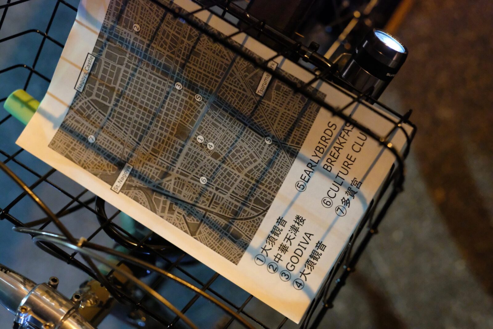 当日渡されるチェックポイントが書かれた地図=指示書/マニフェストをもとに、名古屋の街を自転車で走り回ってポイント数を競います。サークルズに入ってから数多くのポイントレースを企画してきたカモちゃんが今年も19周年を盛り上げますよ!