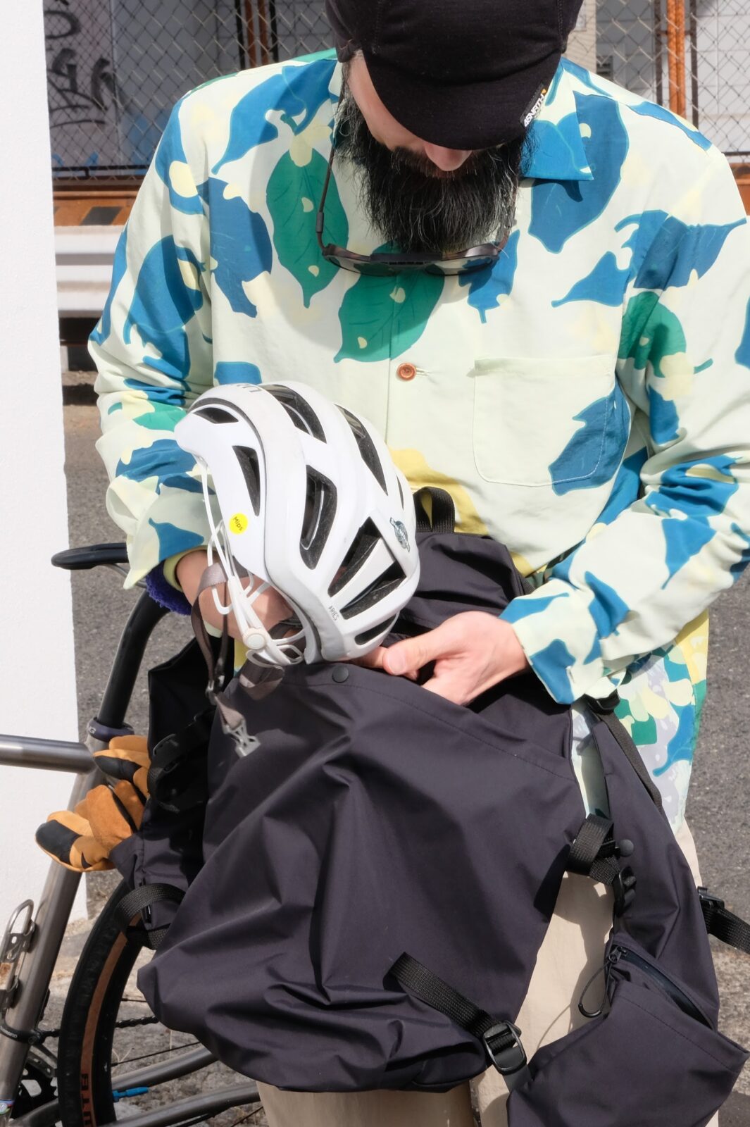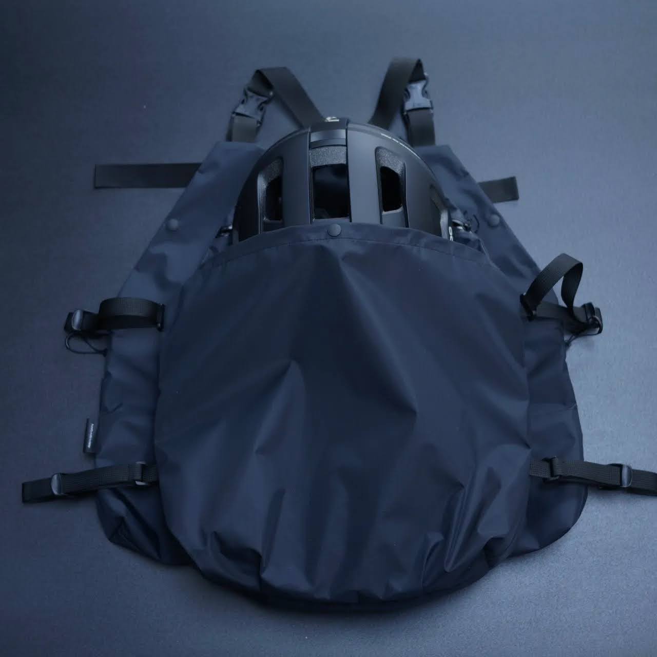 構造的には前後3つのバッグを6本のストラップで繋げたような設計。バックというくらいですから、収納力は抜群です。ヘルメットまで収納出来ちゃうくらいです。