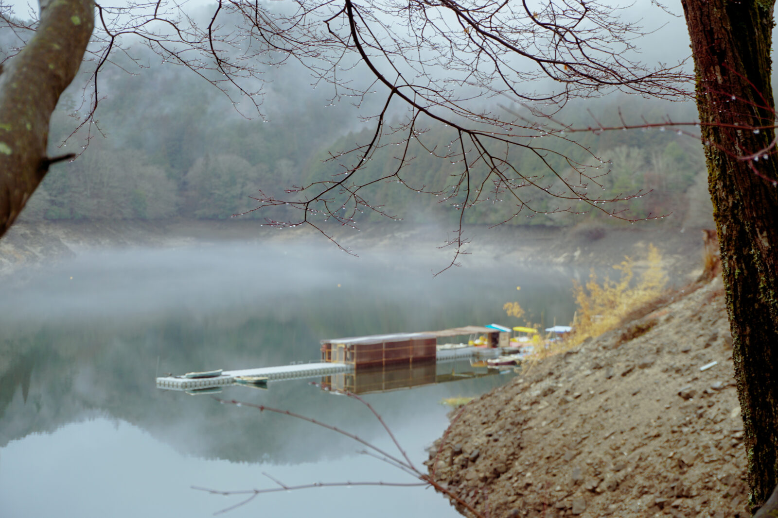 ここまで来るのに苦労したことを互いにハイタッチし、祝福し合った。かすかに見えた湖は、神秘的な霧に覆われ、溢れ出る想像力を掻き立てる。
