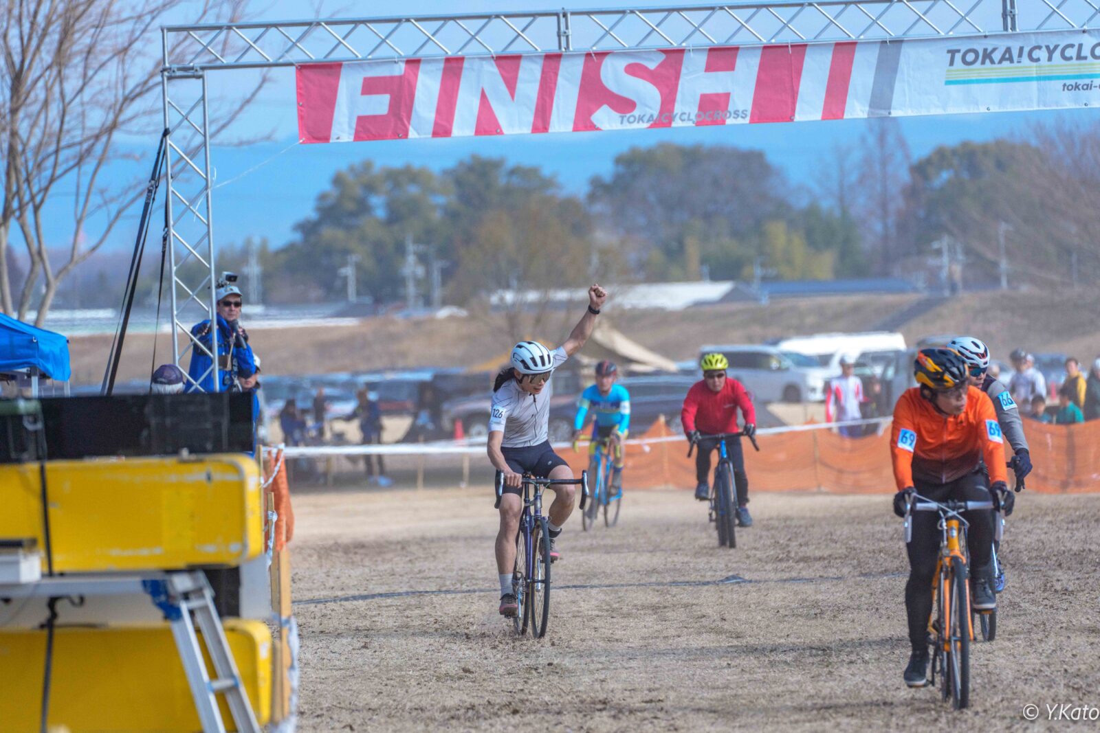 東海cxで唯一のドロップ区間で落車があり、2位に浮上。この辺りから自分のペースが掴めてきました。