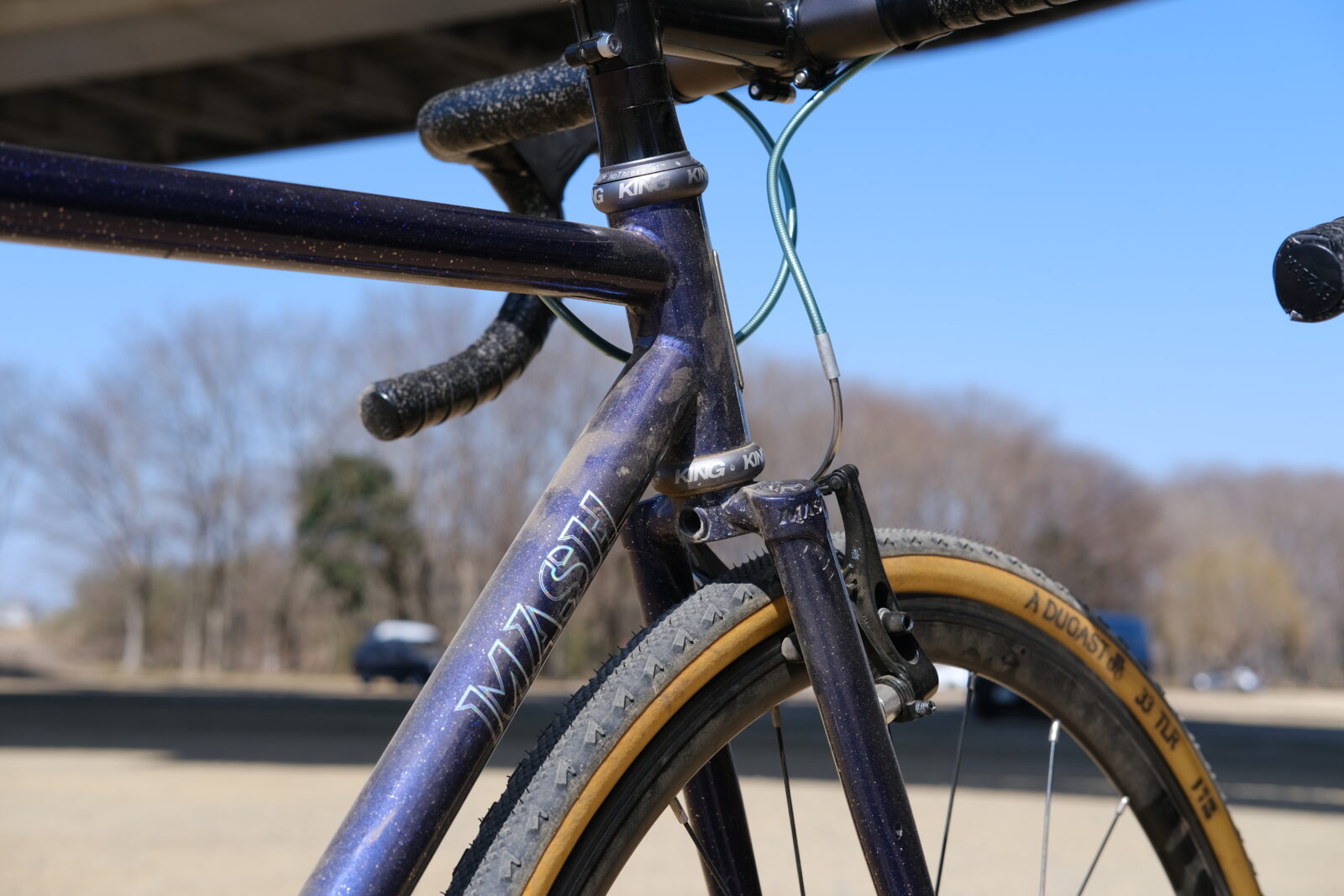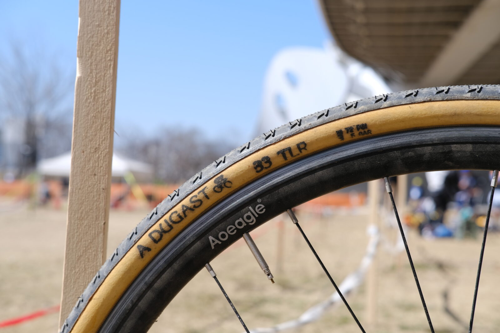 アップもほどほどに出走してしまったので出だしは足が回りませんが、前日のトラクロで土の様子とDUGASTの使い心地が掴めたおかげでコーナーで1歩リード。自転車を担がなければならないシケインも固定ギアよりタイミングを掴みやすい。無事1周目で5番手を獲得。