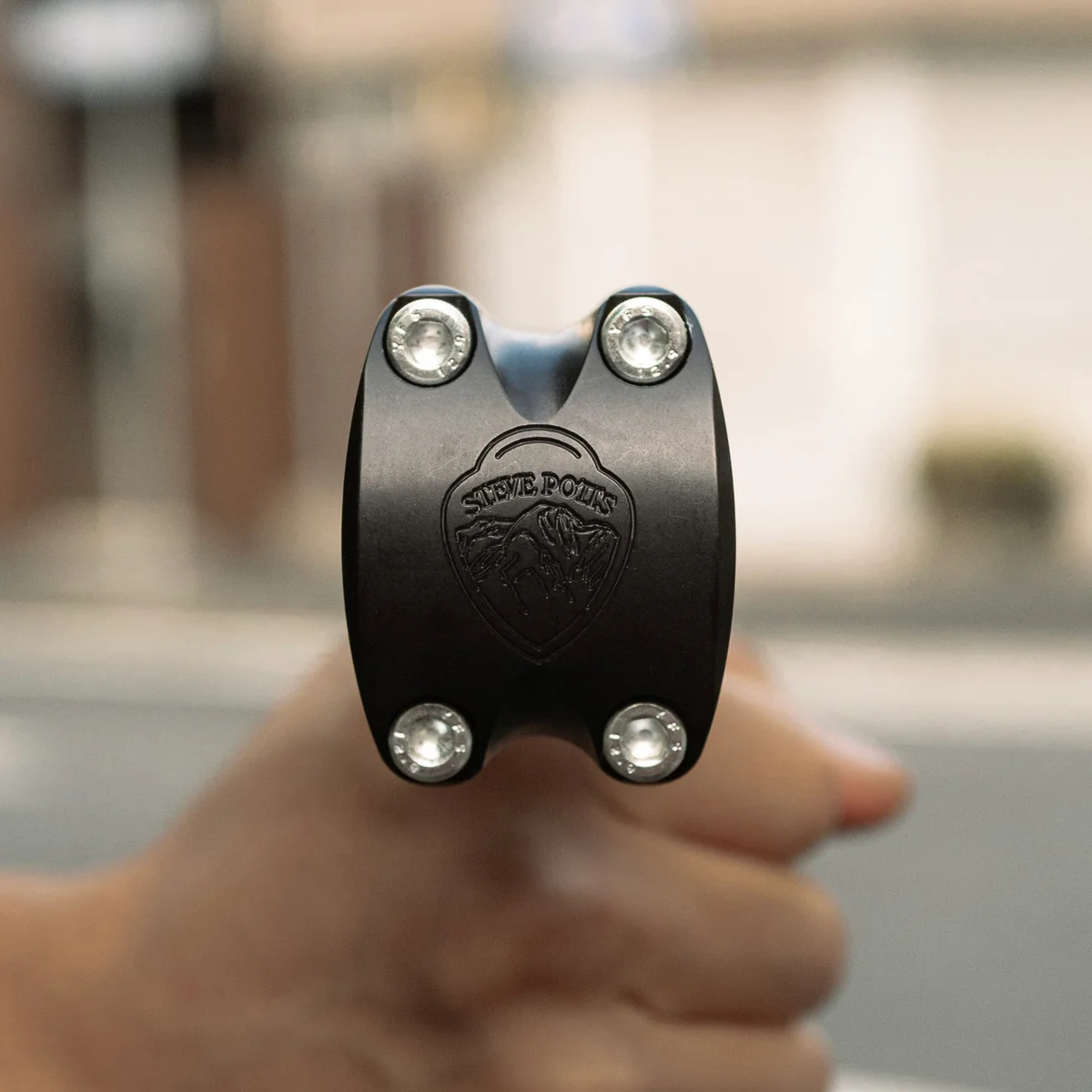チタンという難削材を、まるで粘土のように滑らかに、かつ強固に繋ぎ合わせる溶接痕。Blackcat Bicycles の Mini Moose Stem。