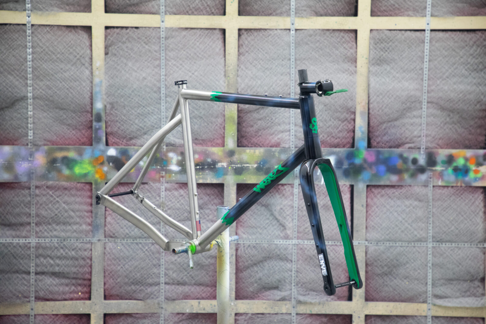 さらに特徴的なのがペイントワーク。1本ごとに異なるカラーリングやグラフィックは、単なる塗装というよりもフレームの個性を表現する大切な要素です。フレーム製作と同じくブルックリンのアトリエで施されています。