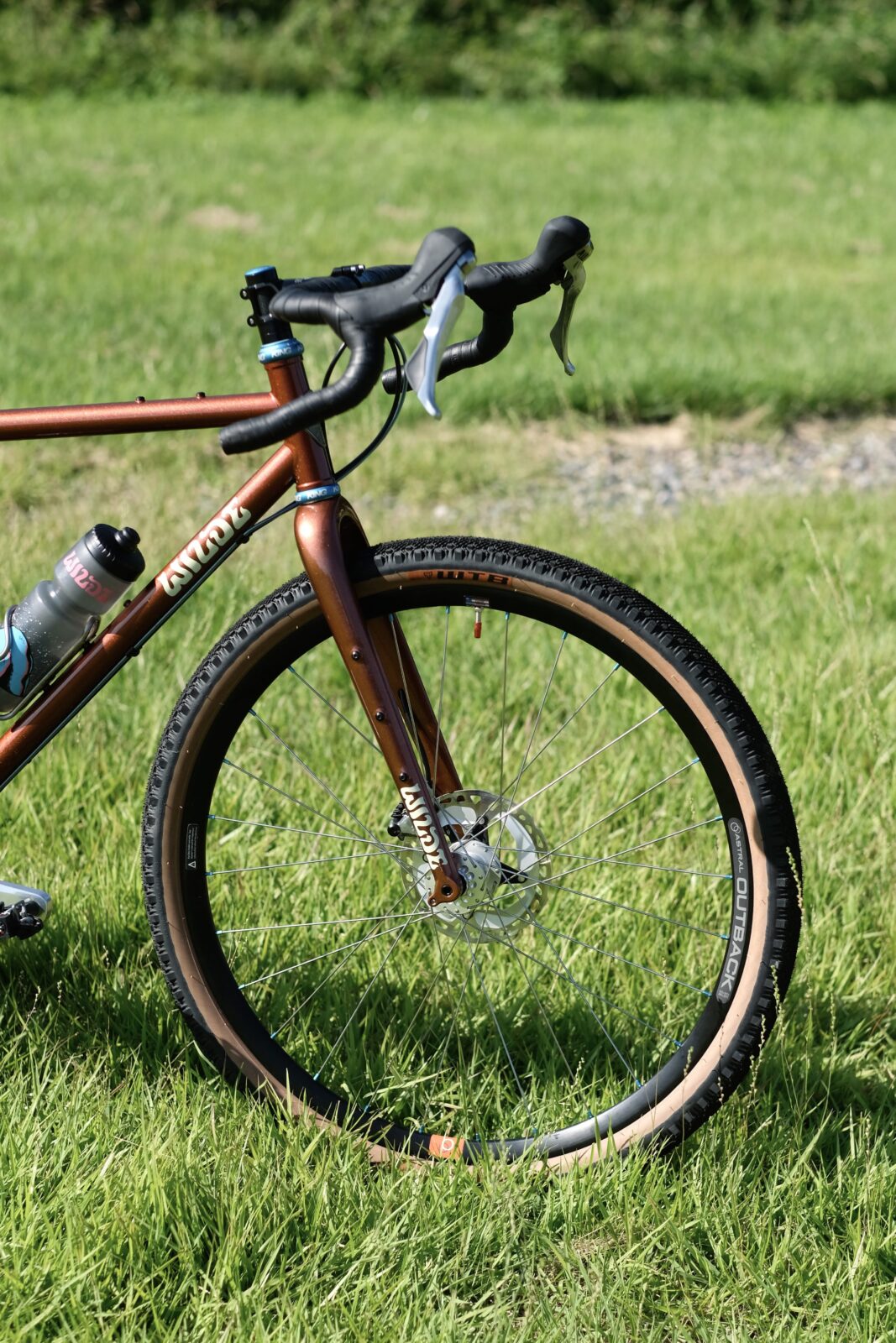 舗装路では多少重さを感じることもありますが、そこまで気にならない印象。むしろ、グラベルをメインに走るならガンガン突っ込んでいける安心感があります。