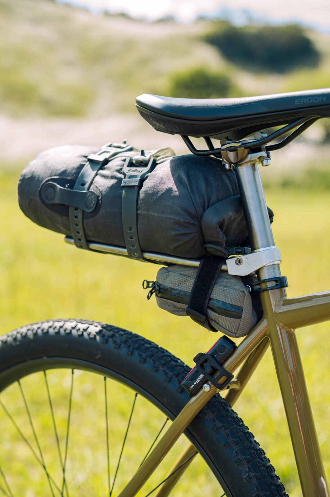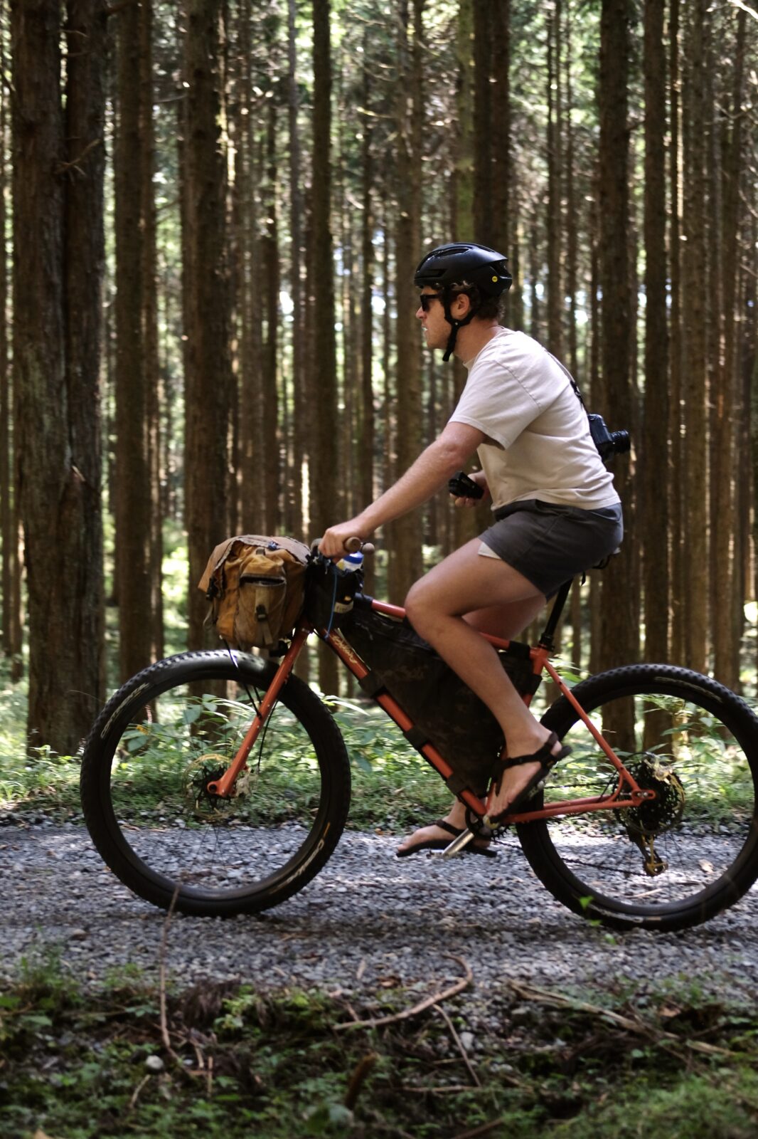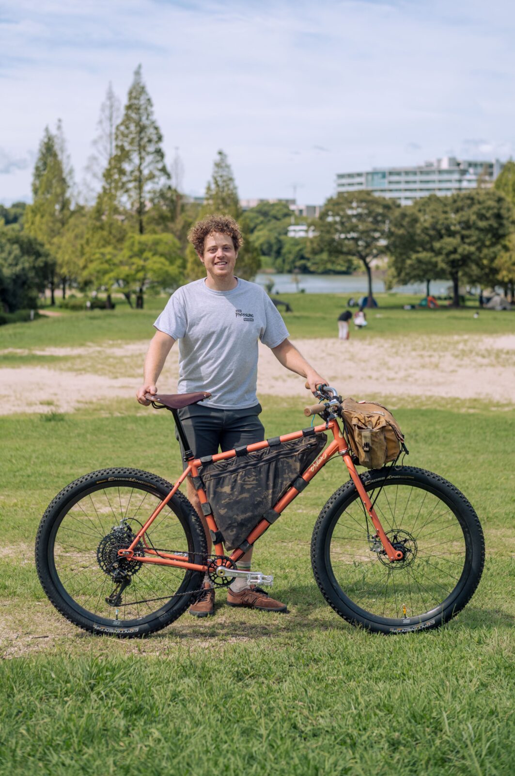 彼もアダムと同じくハンドルバー+フレームバッグの組み合わせ。