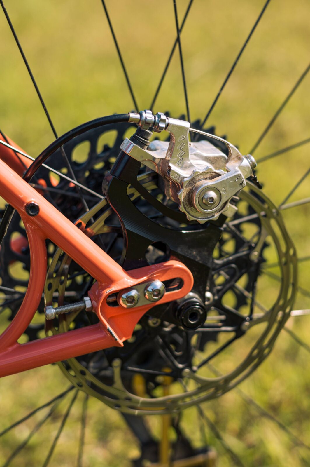 トレイル特化型のバイク・Tall Taleでは油圧ブレーキを使っているアダムですが、PBJのブレーキはメカニカル式をチョイス。もちろん彼も仲良しのPAUL COMPONENTのKlamperをチョイスしているんですが、ショートプルを使って引きを軽くしているのが通な組み方です。