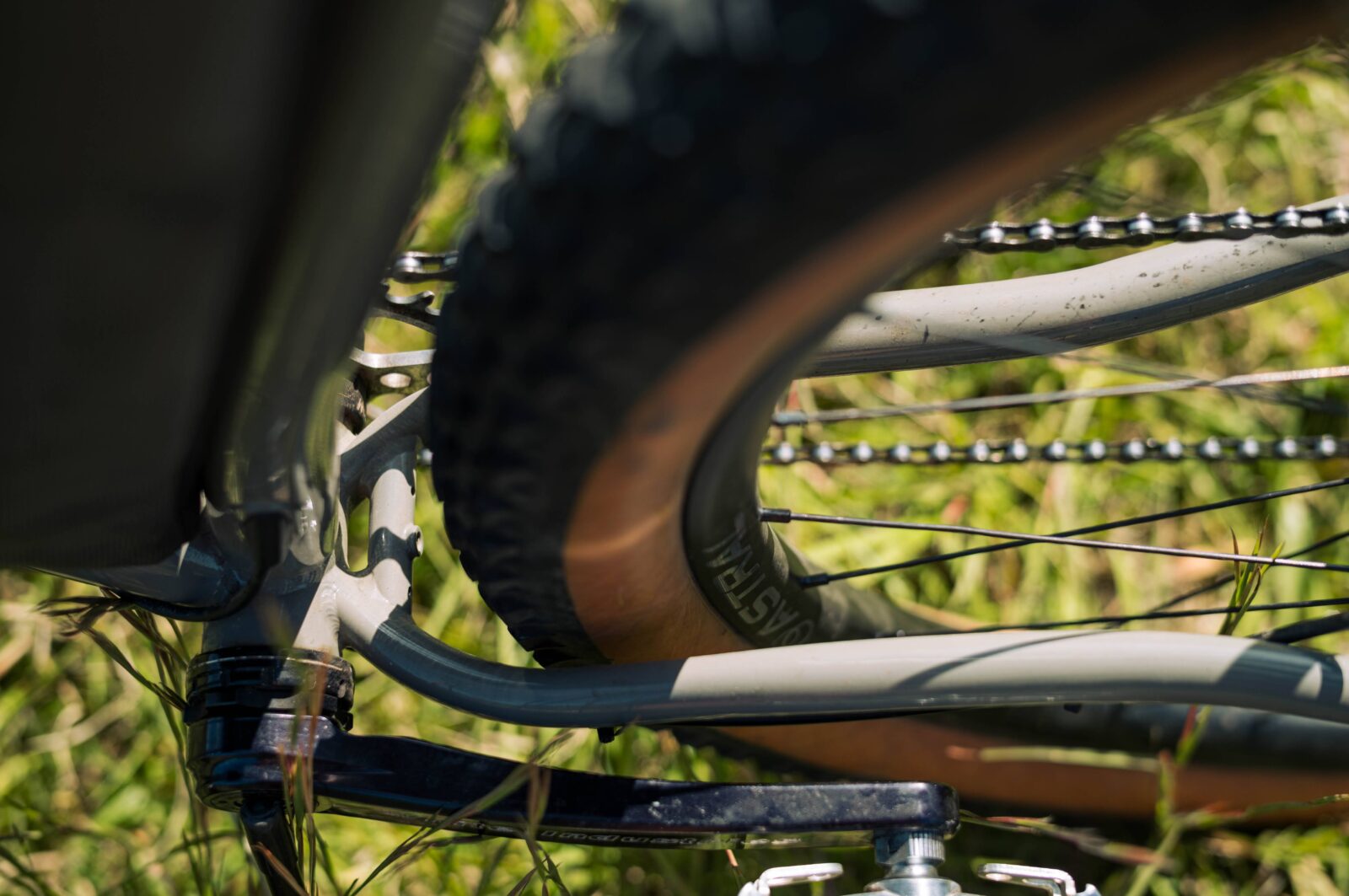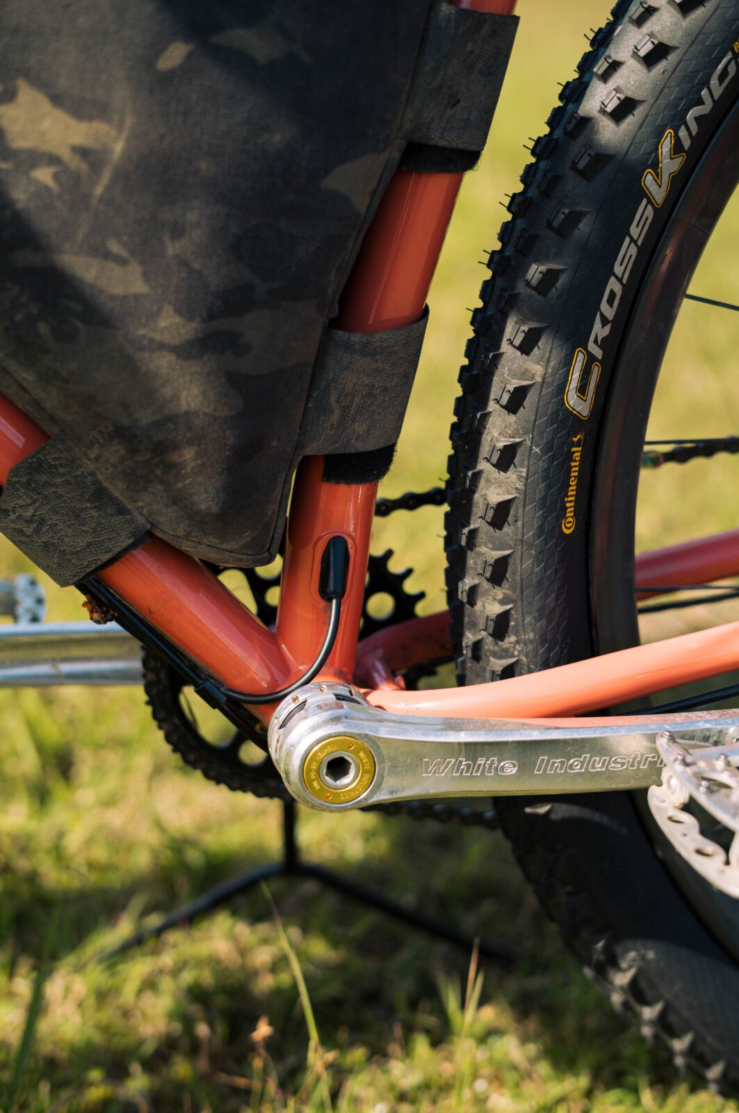 アダム同様にブレーキ・シフトともにメカニカル運用で万一の場合にも復旧しやすい構成に。タイヤは29×2.6″のTERAVAIL Honchoを入れて、どんな道でもお構いなし。オリジナルの3Dヨークのおかげでこの太さでもしっかりクリアランスを確保しています。