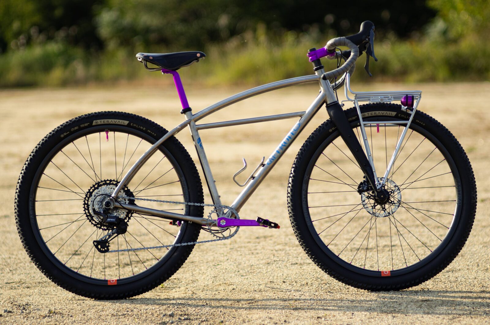 だからこそ、その雪辱を果たす。以前は2日間のバイクパッキングでゆっくりと味わいましたが、今度はもっと自由に、もっと気持ちよく走りたい。そのために選んだのが、このRETROTEC Ti Double “Hella Monster Cross”なんです。