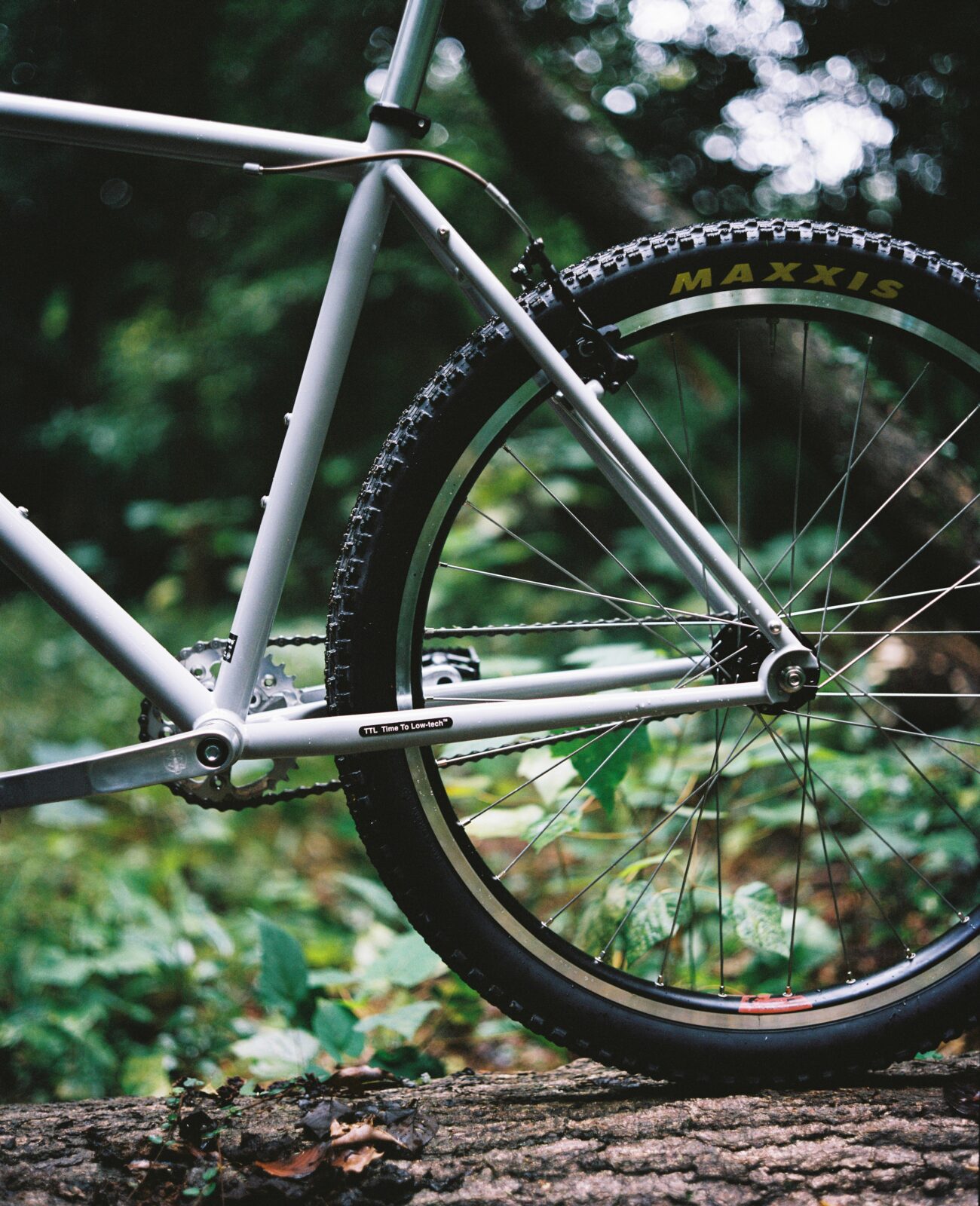 仕様といえば、壊れにくく頑丈なクロモリチュービングとシングルスピード用トラックエンド。デザインも限りなく省きました。26インチ、1-1/8”ヘッドチューブ、ユニクラウンフォーク、Tig溶接。フレームカラーは「Grey Card/グレーカード」一色。いわゆる18%グレーを再現しました。