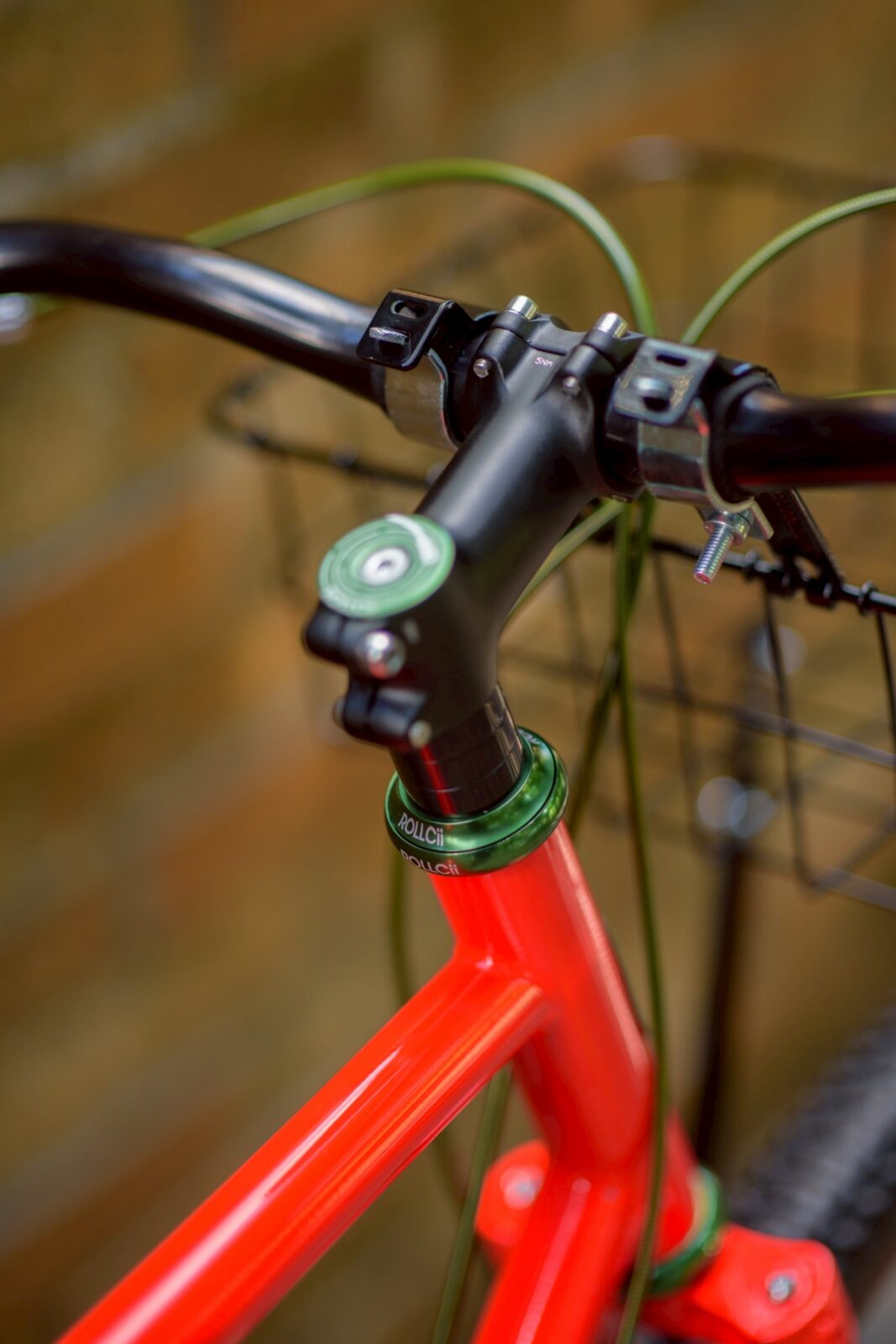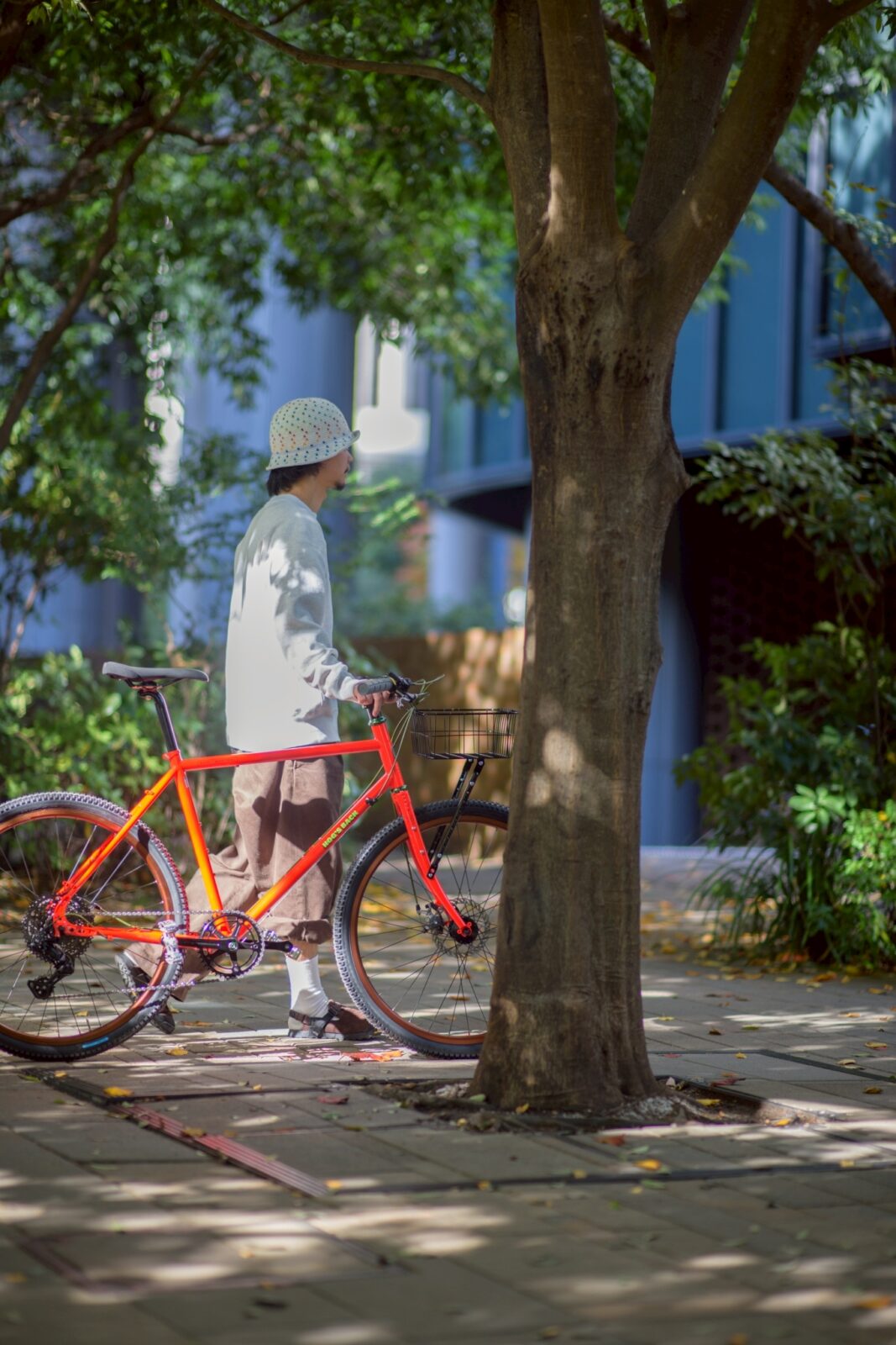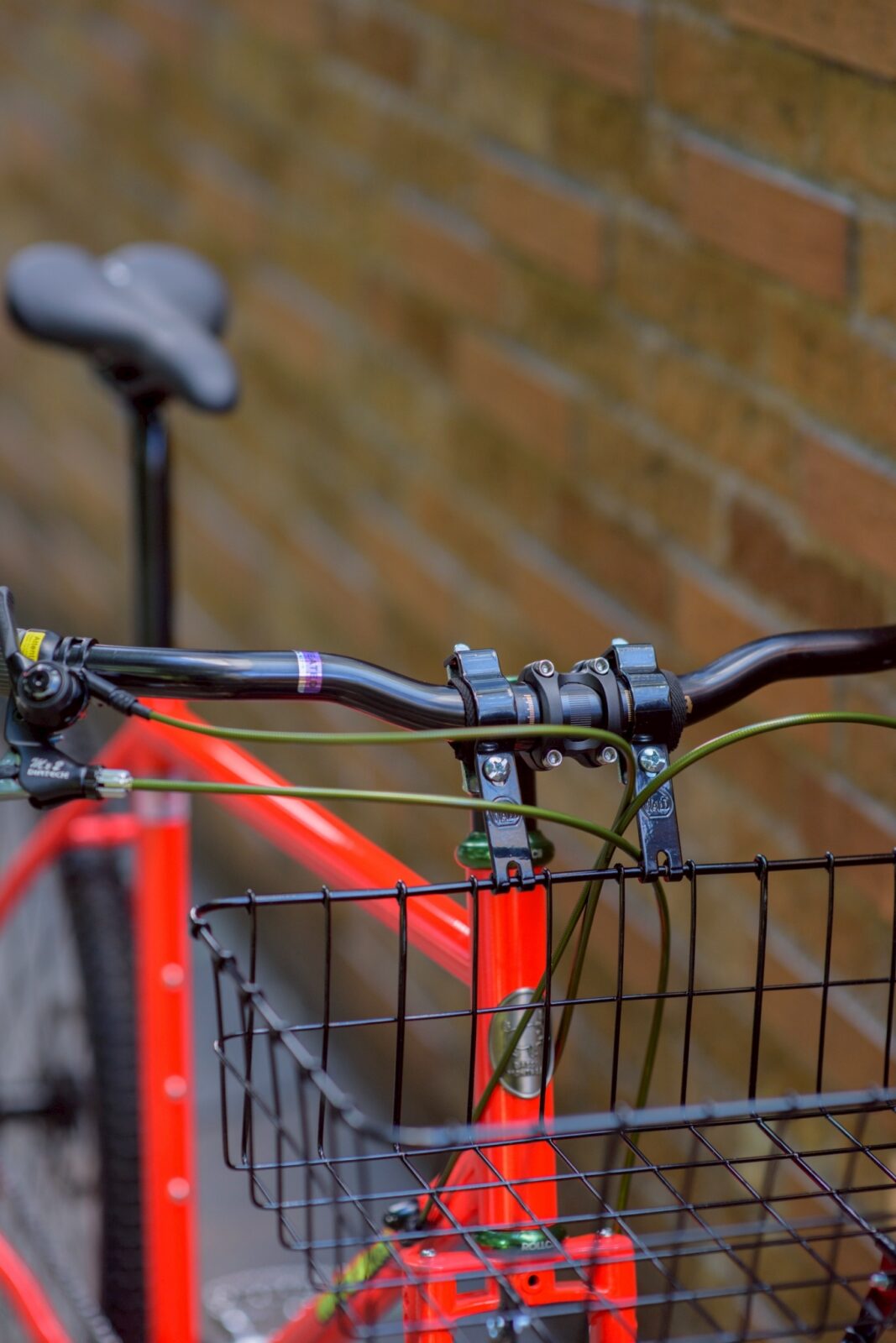 コミューターバイクには必須アイテム、WALD Multi Fit Front Basketを装備。フォークに搭載されたアイレットのおかげでラックもバランスよく付ける事ができます。