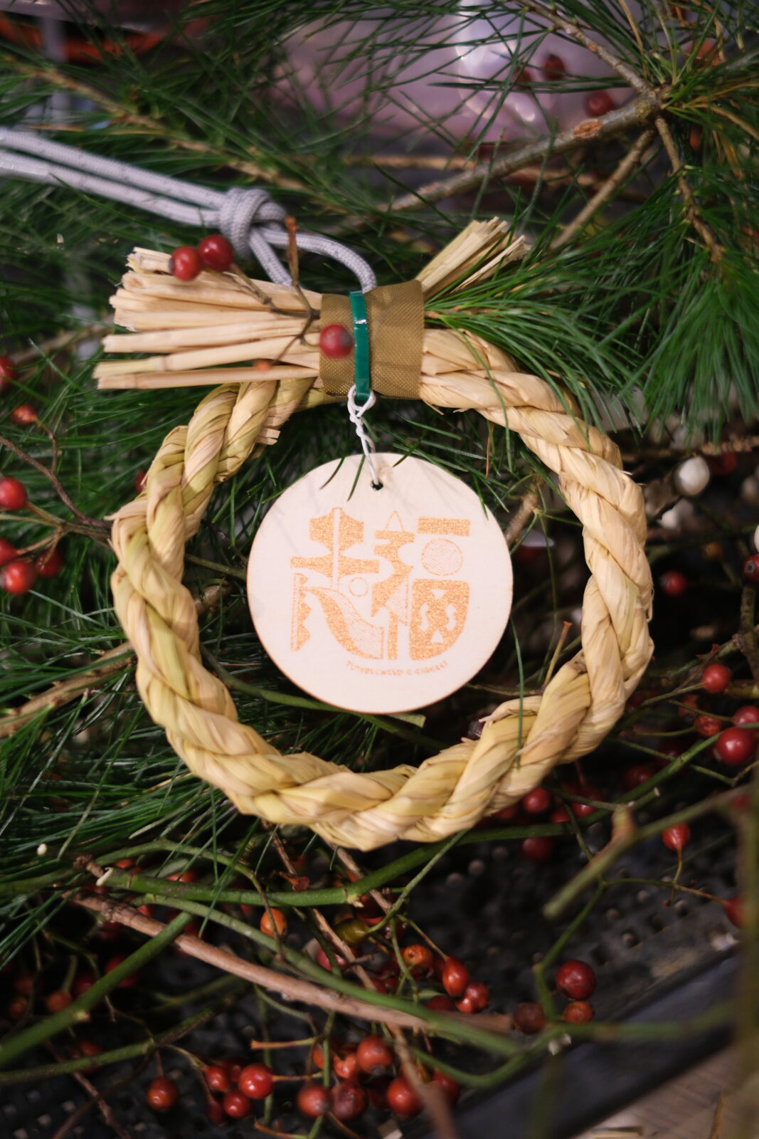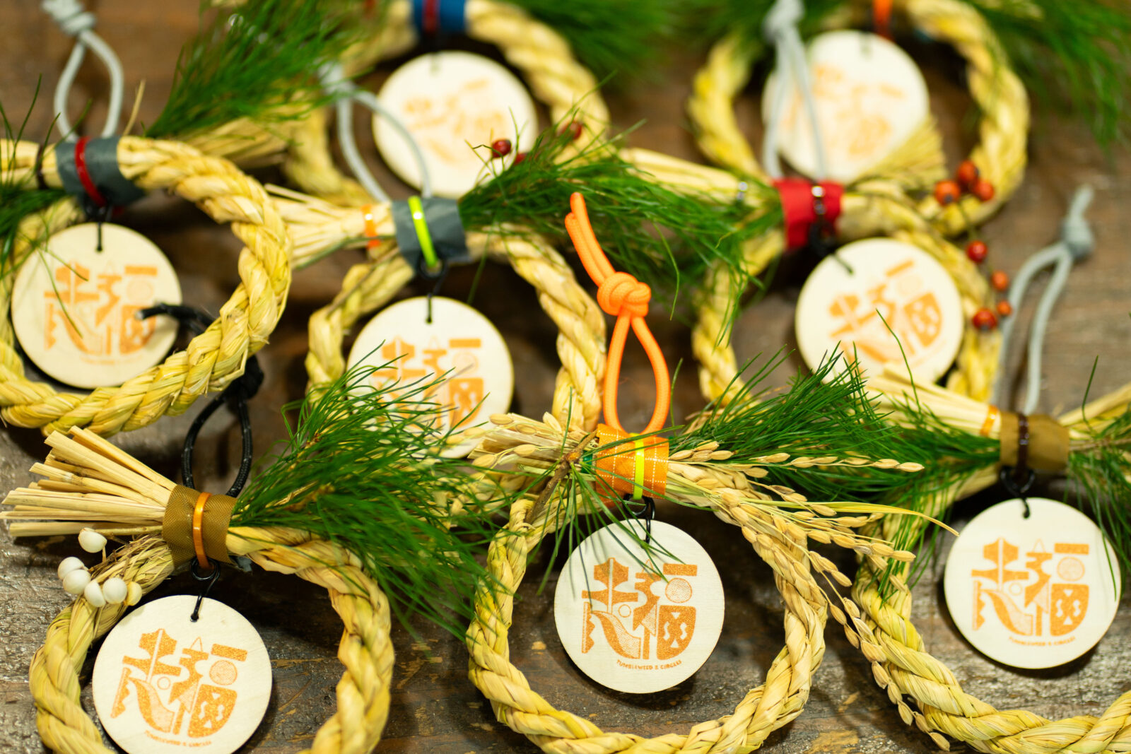 そして私たちが当初からこだわっている一つが、「ローカルな手作り」であること。今年ももちろん、TUMBLEWEEDのコータローさんにお願いしました。しめ飾りの素材となった稲わらは、サークルズのデザイン周りを担当してくれているみなみさんの田んぼからいただきました。感謝!こういう手仕事に触れるたび、手作りっていいなぁと改めて思わされます。