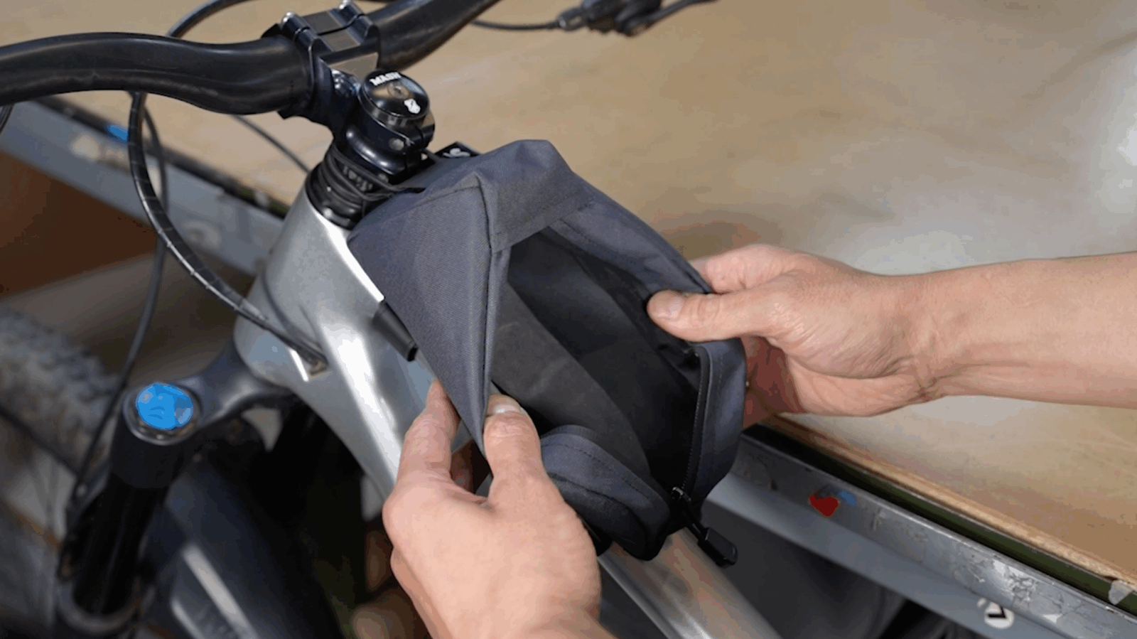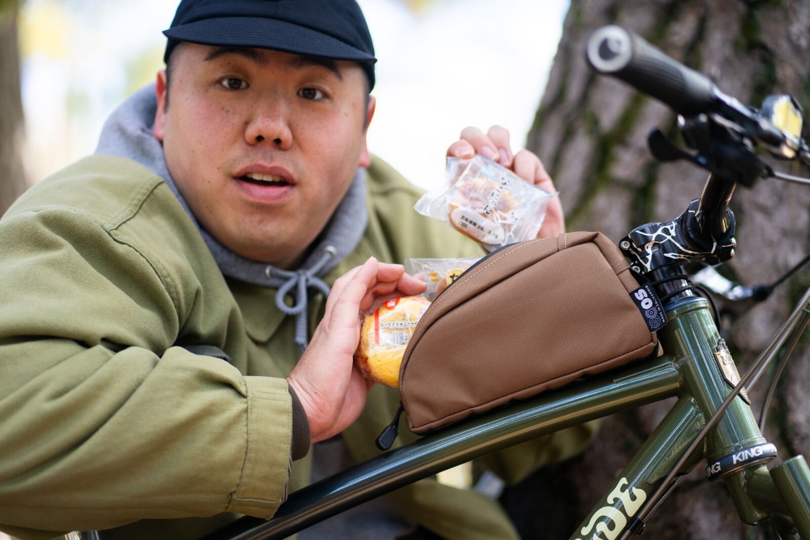 トップチューブバッグの最大の魅力は、走行中でもアクセスしやすい収納であることです。