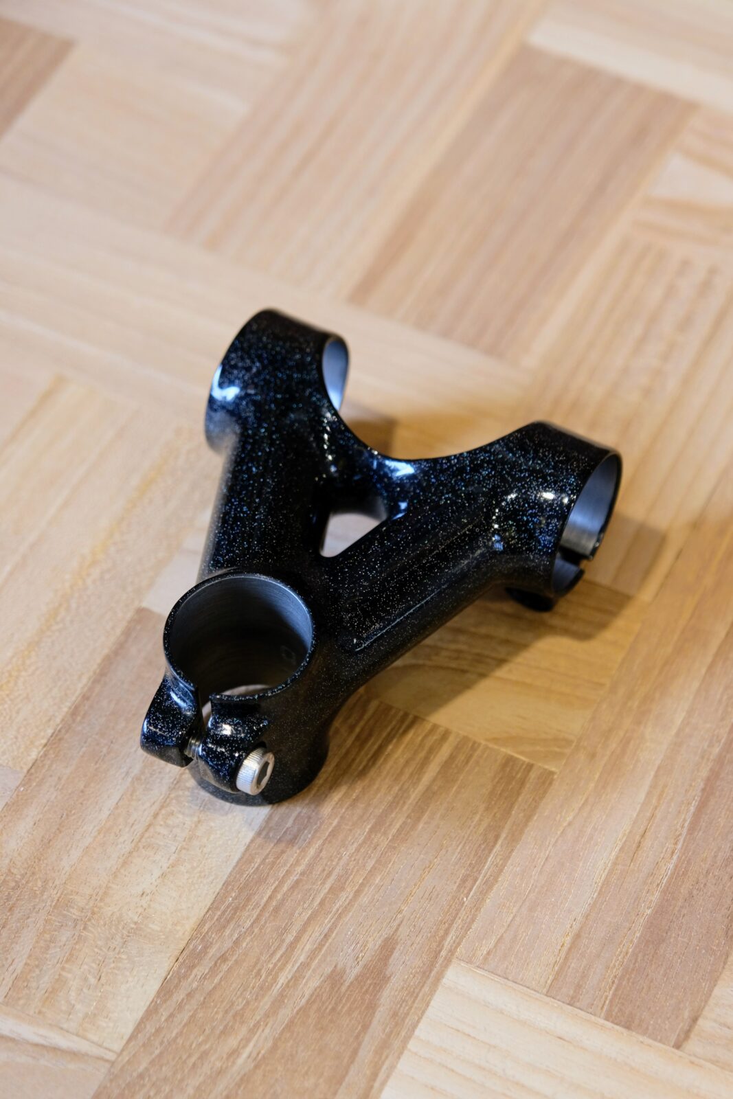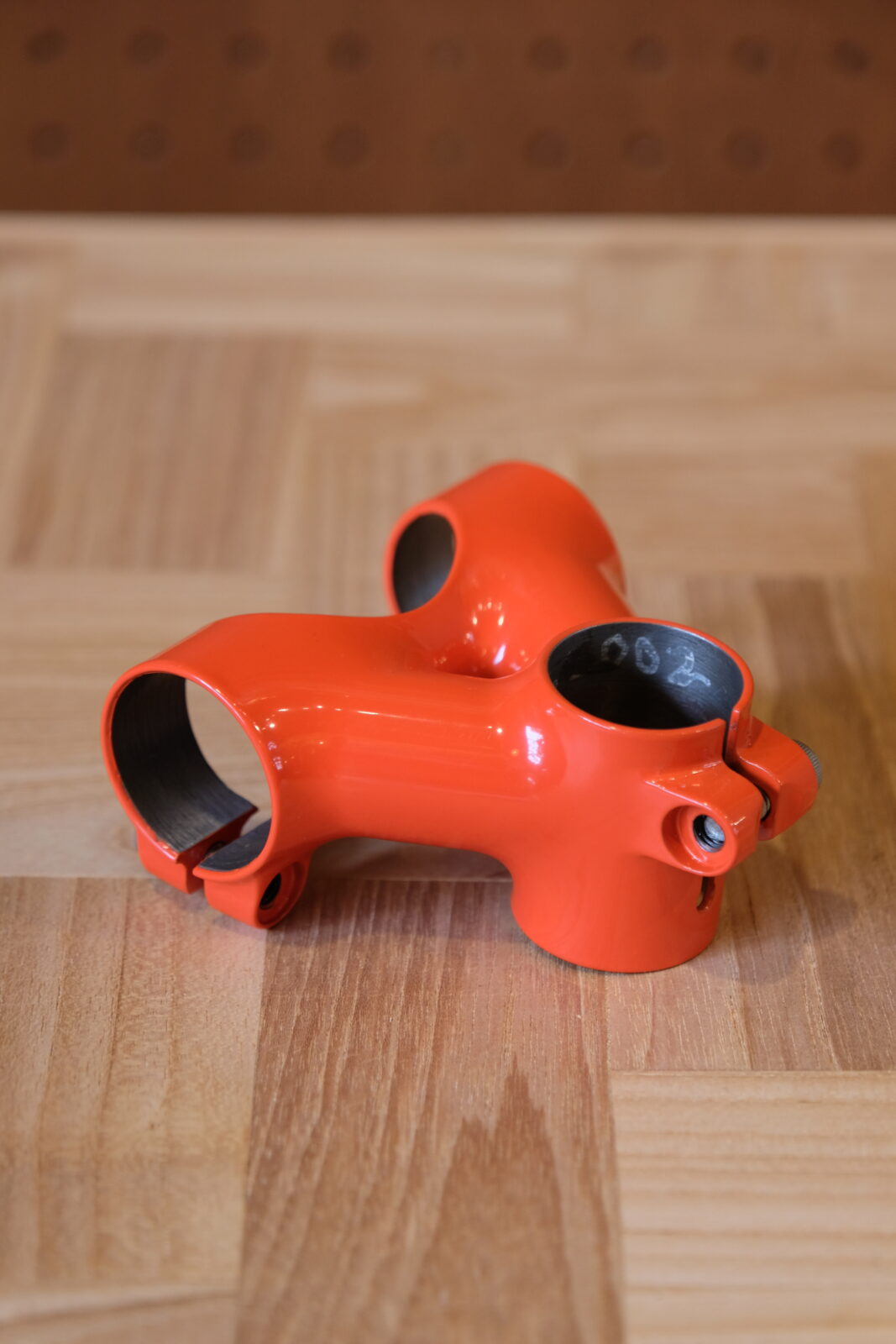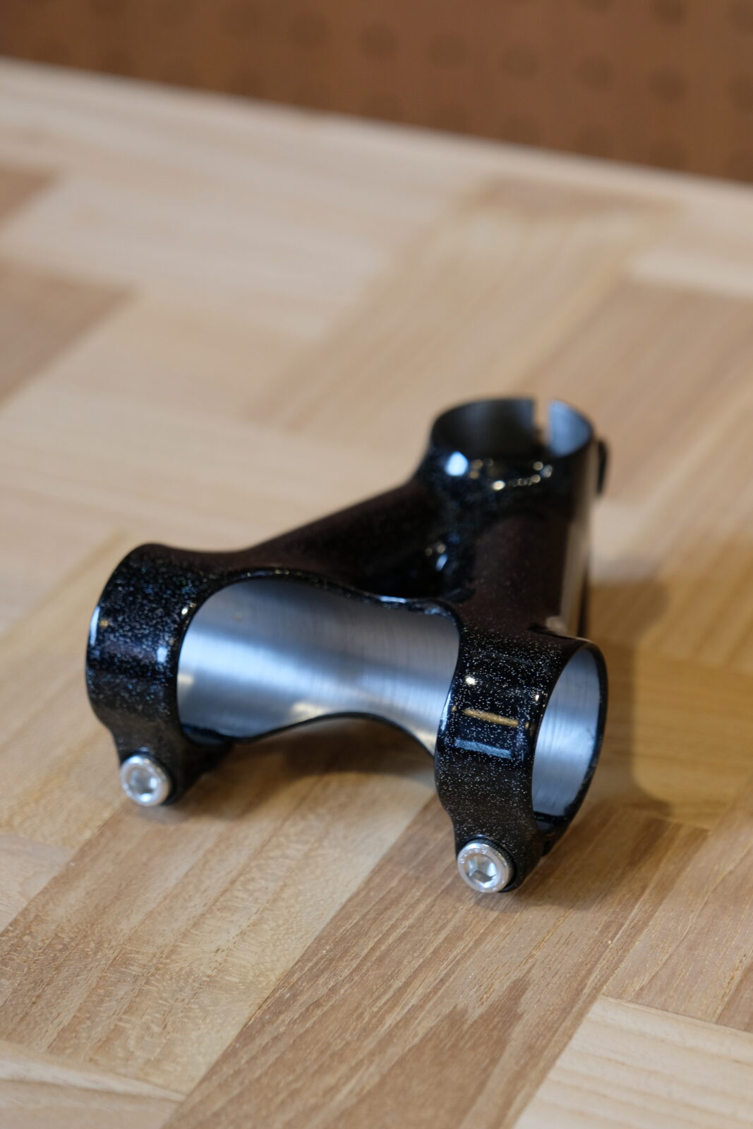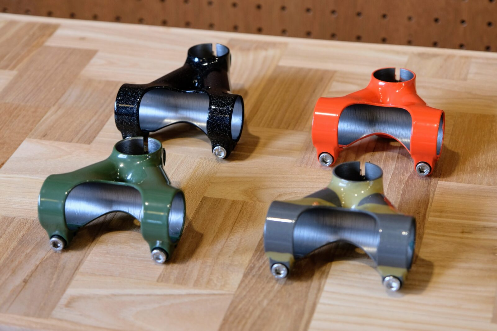 その美しい仕上げと、クローズドクランプによりフロントコクピットがクリーンにまとまるというのも魅力的なステム。50mmと70mmの展開で、それぞれトッド自身によるパウダー塗装が施されています。