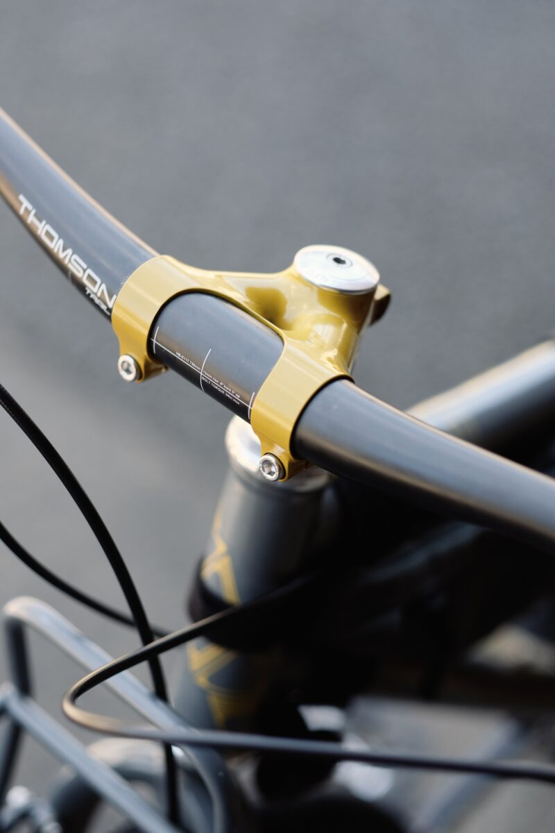 何故か?彼は特にドロップハンドルに不満を抱いていたわけではありません。休日のグラベルライドもツーリングもそのスタイルで楽しんでいました。しかし、このステムと出会ってしまったがため、このステムを装着したいという思いが抑えきれなくなってフラットハンドル仕様のアッセンブルに変更してしまったのです。