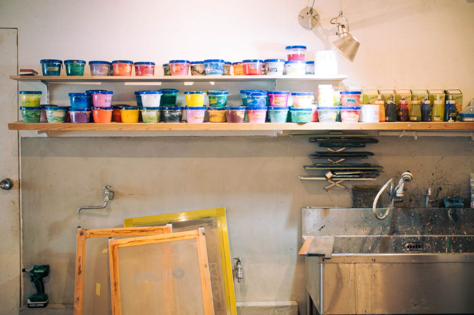 今回このシルクスクリーンを担ってくれたのは、サークルズの裏手と同じ通り沿いにあるstudio VIICONさん。小さく構えられたアトリエは、底知れぬ存在感を放っています。