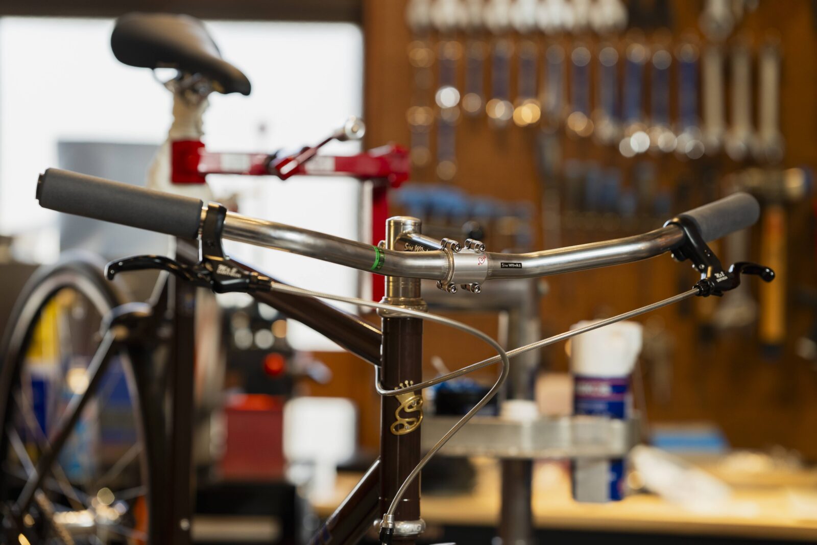 今回の1台は、Candy Brownのフレームにシルバーパーツをメインにアッセンブル。とてもクラシカルな雰囲気に仕上げました。