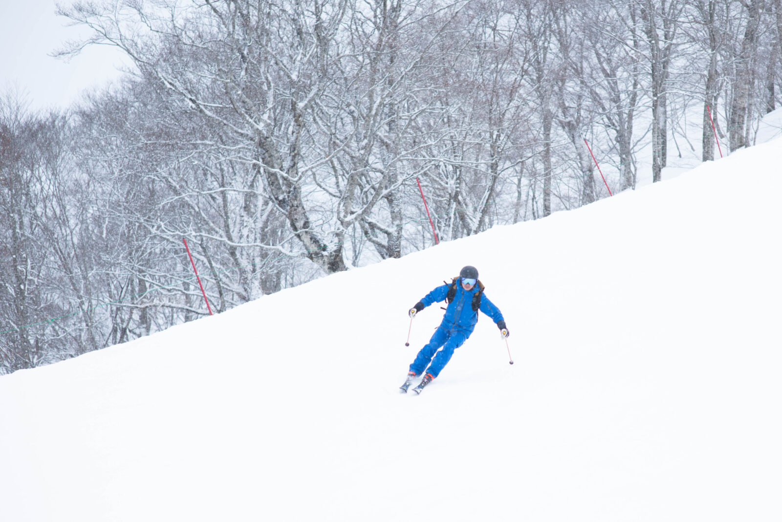 ターンの前半で急がず、板の反応を待つ。 そして後半まできれいに乗り切れたとき。 板が雪面を切り裂くというより、雪と対話しているような感覚になります。