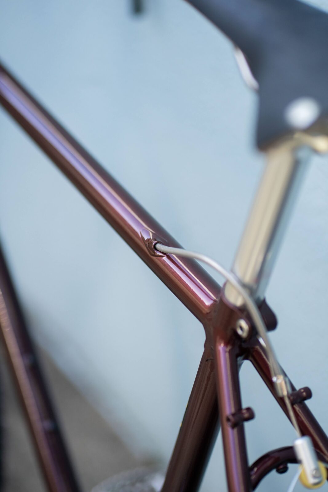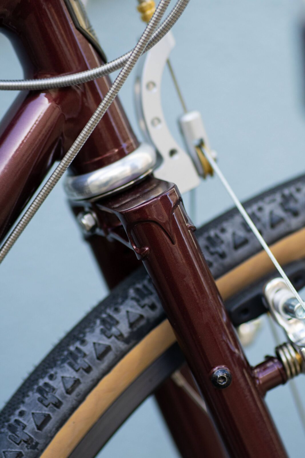 それでもこの美しい仕上げにこだわり、さらにフレームに合わせるためにフォークにはPACENTIの伝統的なPBP(Paris-Brest-Paris)フォーククラウンを採用していることもジェフの譲れなかったこだわりポイント。