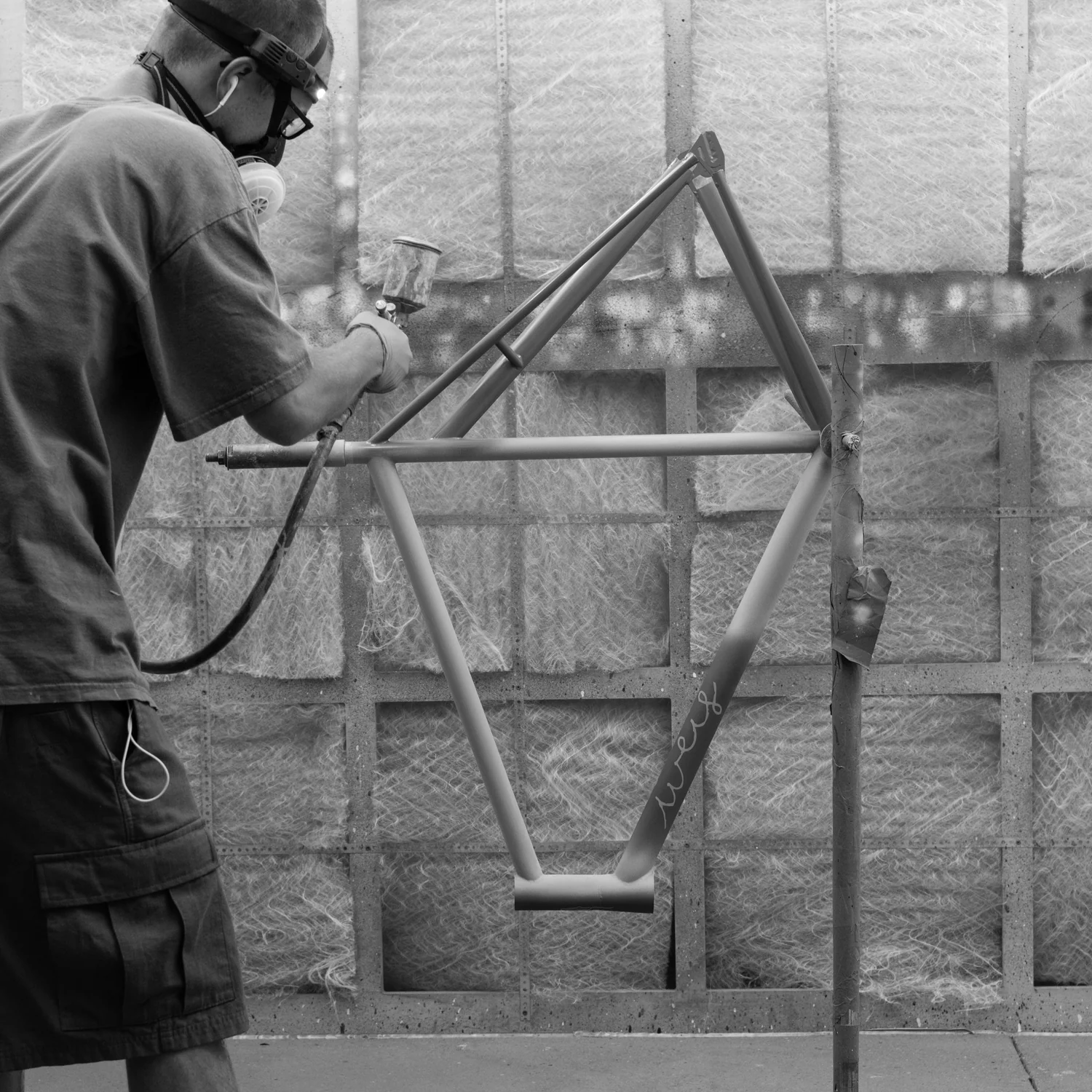 さらに特徴的なのがペイントワーク。1本ごとに異なるカラーリングやグラフィックは、単なる塗装というよりもフレームの個性を表現する大切な要素です。フレーム製作と同じくブルックリンのアトリエで施されています。
