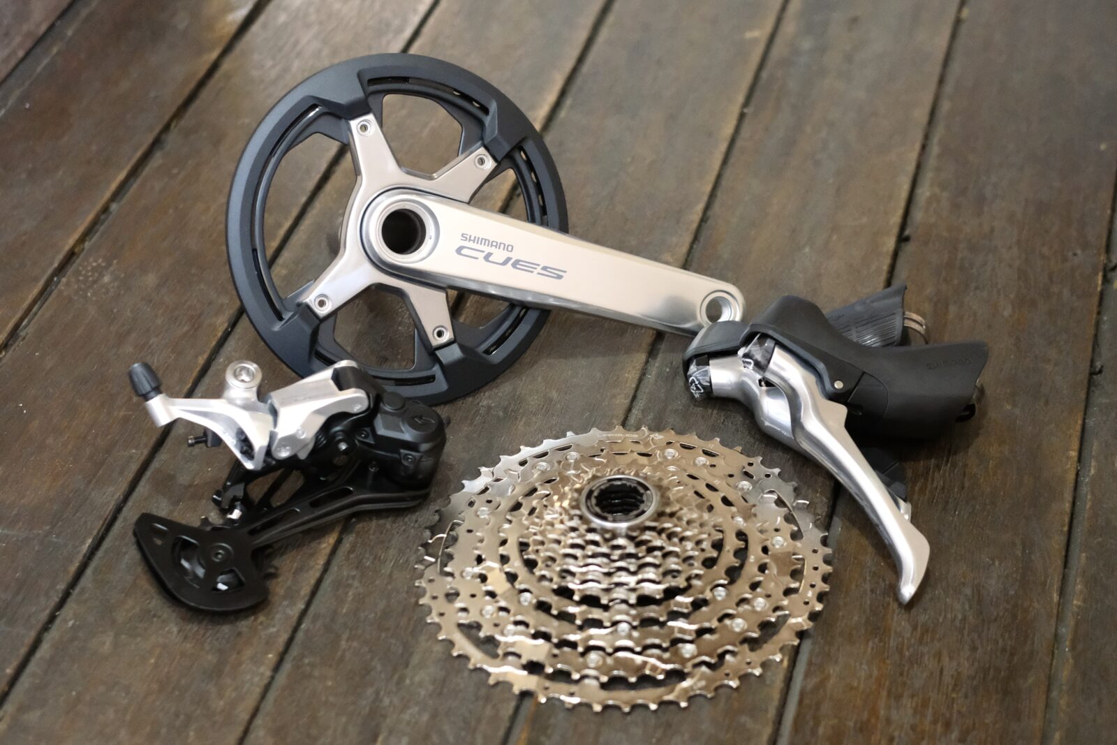 SHIMANOからリリースされている、街乗りからカジュアルなスポーツライドまで幅広い使い方を想定し、また昨今広がっているE-Bikeへの装備も考慮した上での、耐久性が高く、快適なシフト操作を可能とする CUES/キューズ シリーズ。
