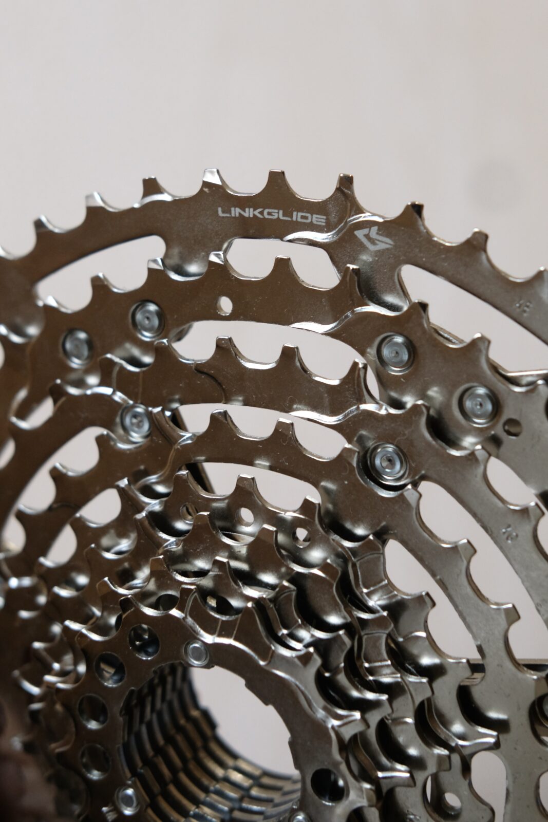 そして、CUESシリーズに採用されているLINKGLIDEというシステムも見逃せません。従来のHYPERGLIDE(HG)に比べて3倍の耐久性を持つ駆動システムは、長寿命+チェーン飛びを抑制するだけでなく、変速時の「ガッチャン」という変速ショックも抑えられており、スムーズな変速→ペダリングをもたらします。