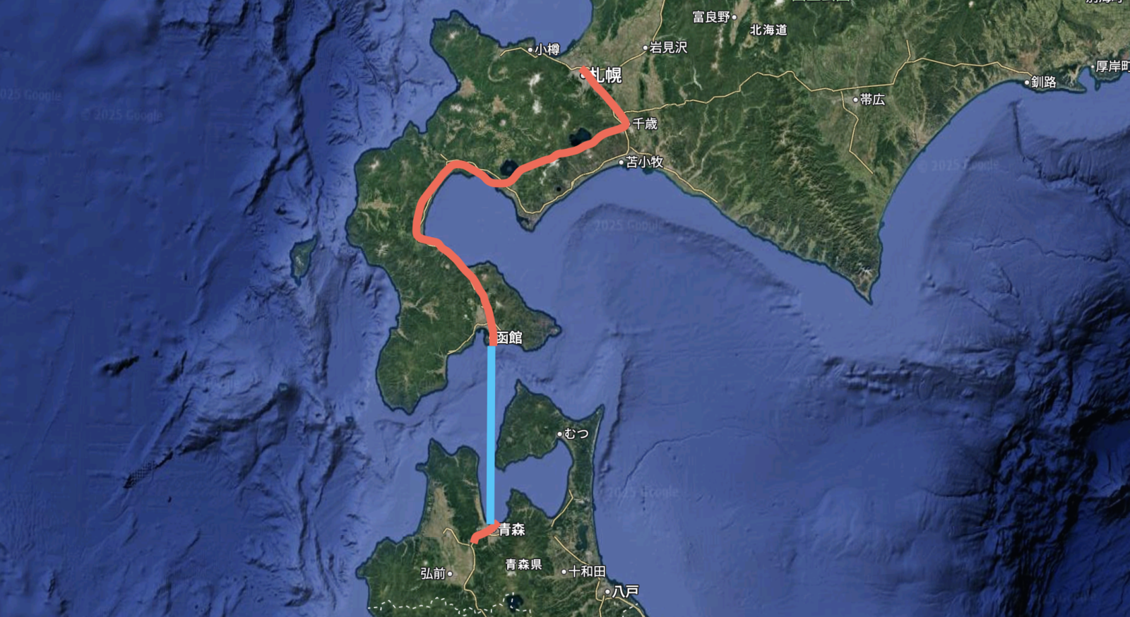 今回の旅程ざっくり説明すると4日間で札幌(丘珠空港)→函館(フェリー乗り場)→青森(青森空港)を走り切るというかなり詰め込んだツーリングになります。
