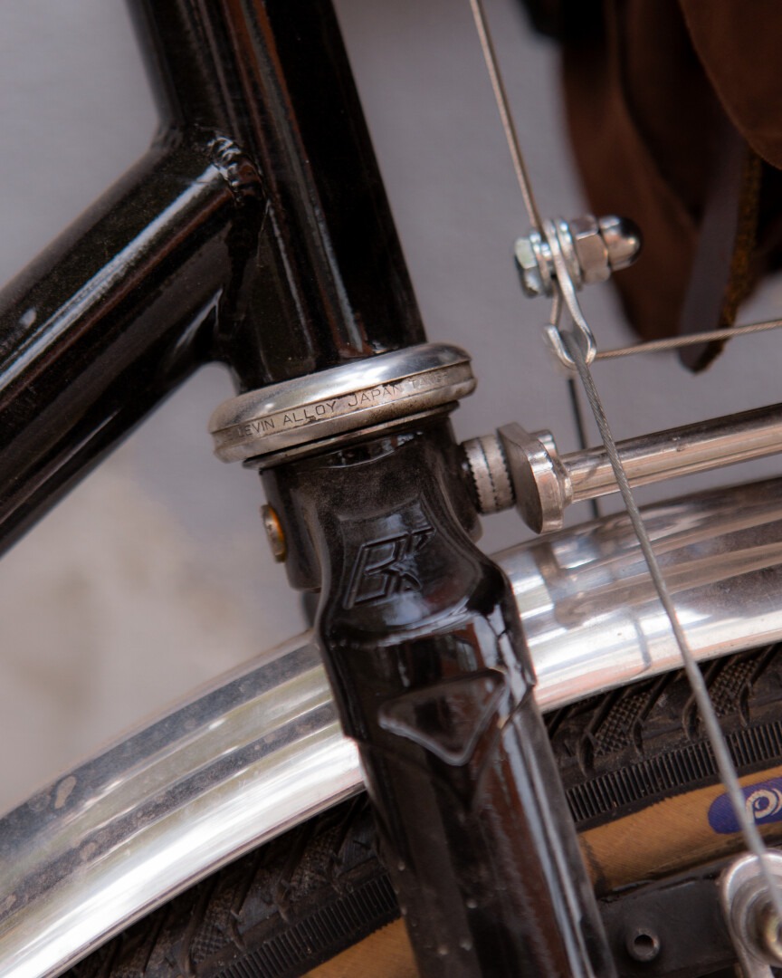 結局、古いフレームとホイールを友人に渡して、その代わりに彼のアート作品と使ってなかったホイールをもらった。だからこのバイクのハブとスポークの半分はすでに世界を旅してきたものなんだよね。リムは新しいZac-19で、Rivendellが2000年代に650Bを再導入したときのオリジナルモデル。ちょうど適切な穴あけ仕様のものが手元にあったから、それを使った。