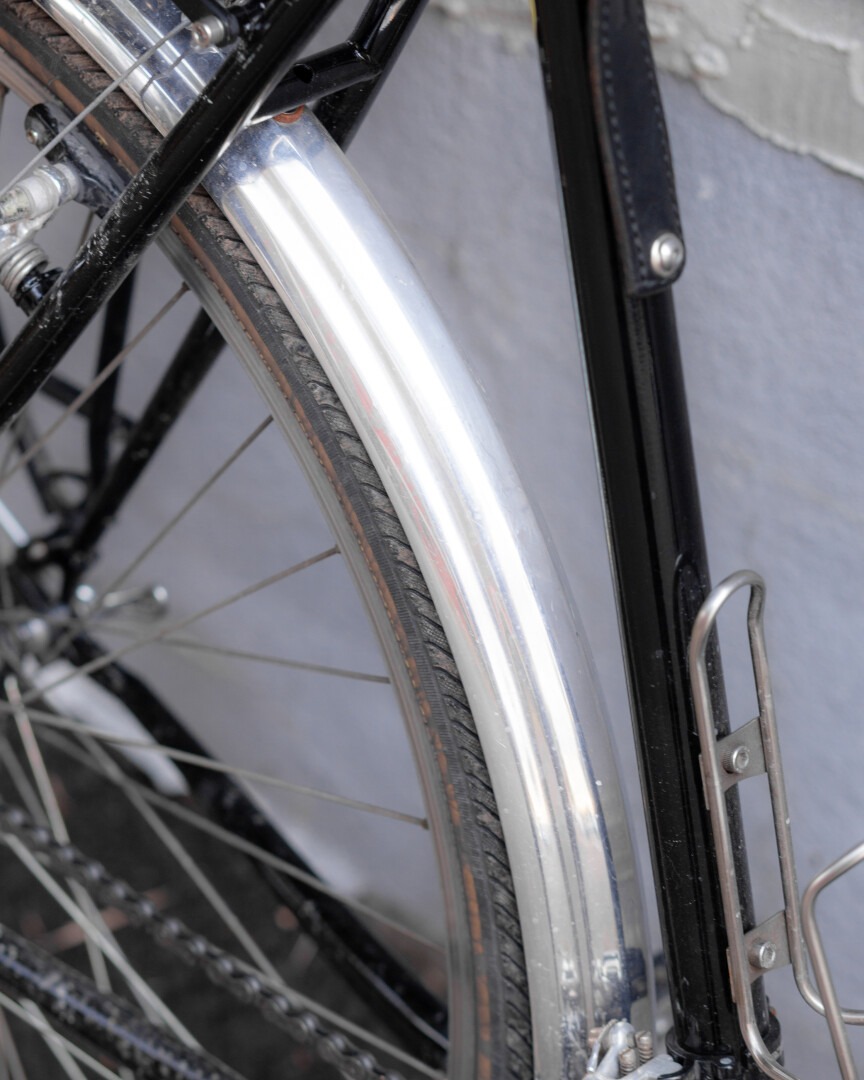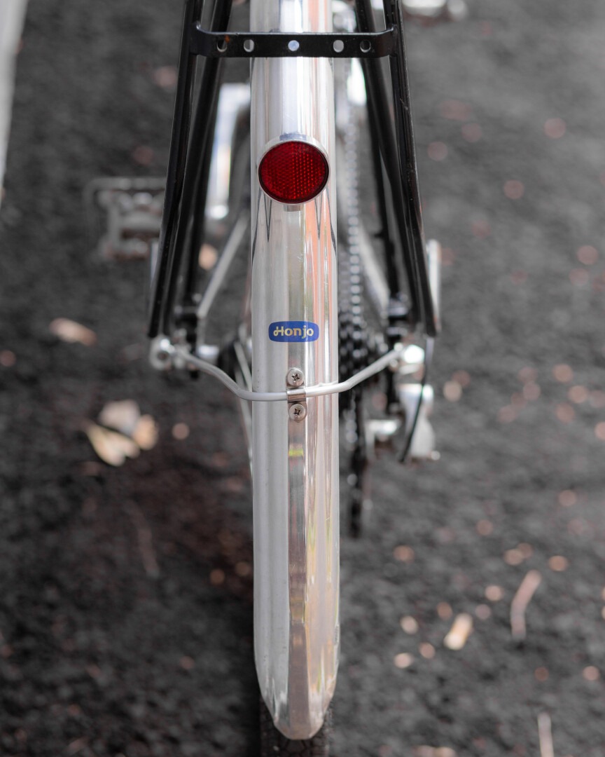 もちろんフェンダーは交換しなきゃいけなかった。タイヤが太くなって径も小さくなったからね。前に使っていたHonjoのは、傷だらけでグレーがかったアルミの質感が最高だったんだけど、古いホイールと一緒に手放した。今はピカピカの新品フェンダーを背負ってるけど、まあ数年もすればいい感じにパティーナ(経年変化による風合いや味わい)が出て「beausage(使い込まれた美しさ)」になるはず。