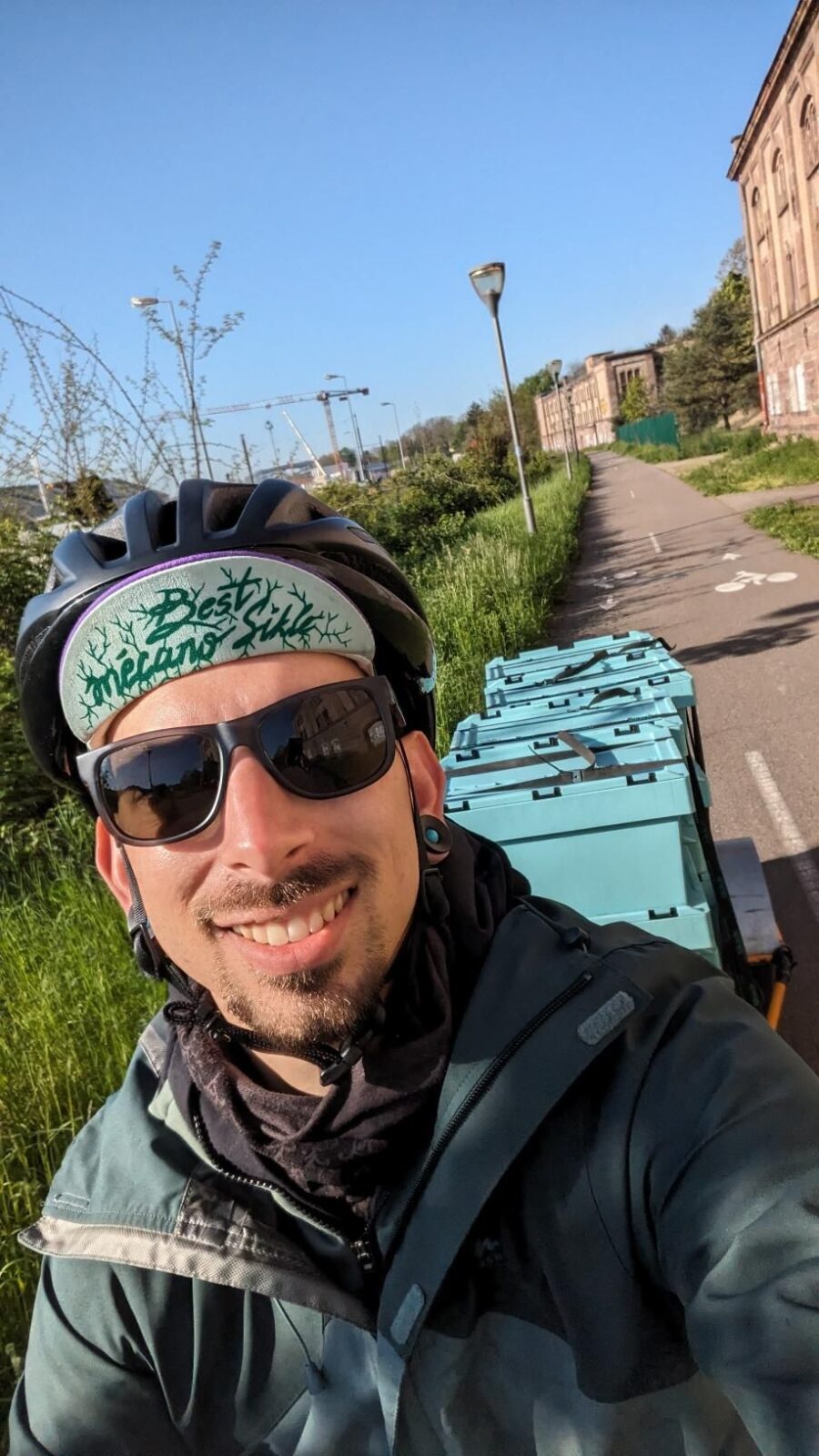 Bien plus qu’un substitut pour une voiture familiale, le vélo cargo sait aussi se transformer en véhicule professionnel. Ici le deuxième interviewé nous présente un cas où il a pu travailler avec un vélo cargo pour ramasser des déchets biodégradables en métropoles pour ensuite les transformer en terreau. Il s’agit du français Adrien, 33 ans et féru de bikepacking et de voyage.