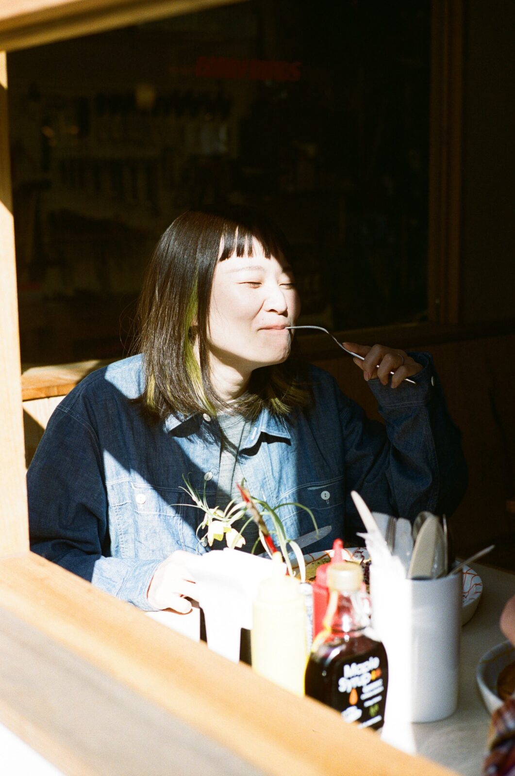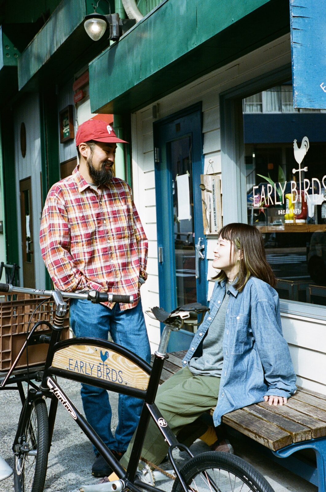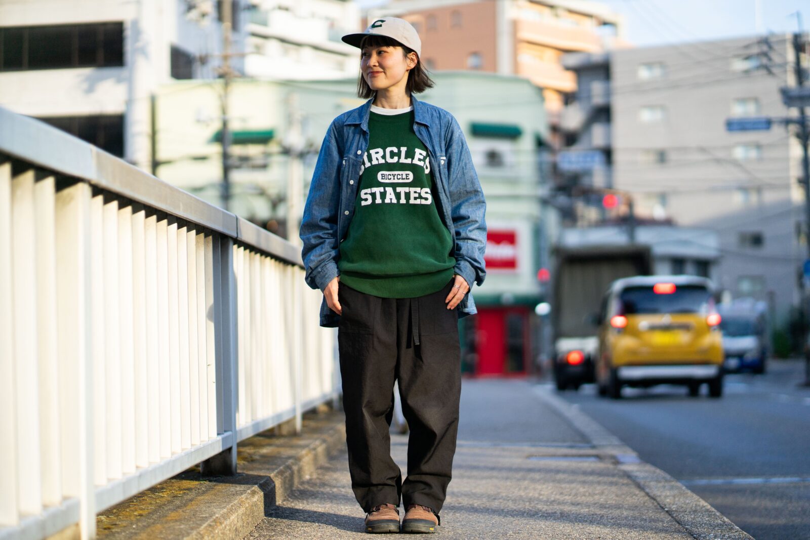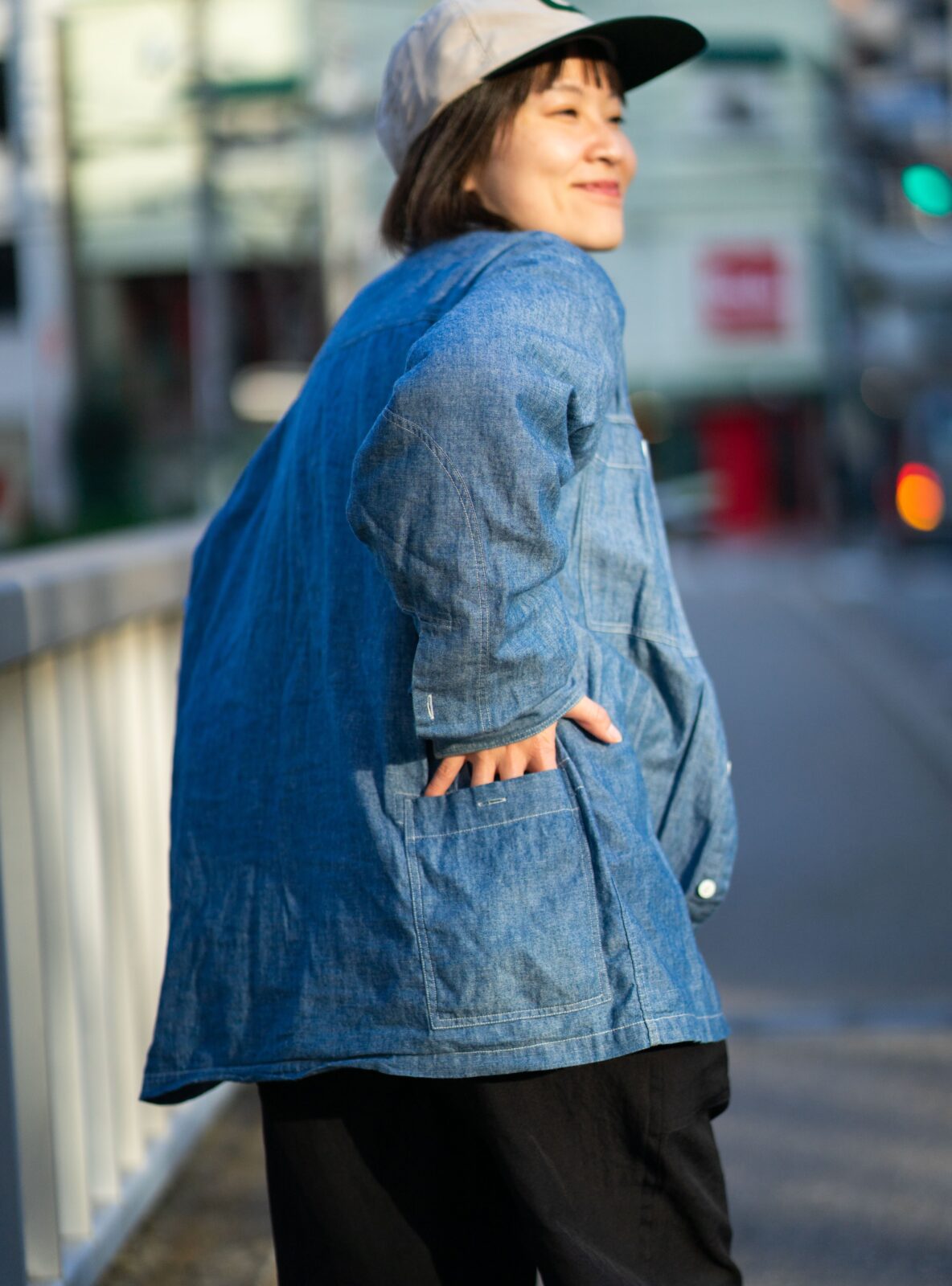 夏は軽い羽織として、秋口から今の季節は「ちょっとカッコよく見せたい日」に自然と手を伸ばしました。シャンブレーって不思議と誰でも似合って、スタッフの中でも着用率が高め。シャツとして着ても羽織として着てもカッコいいなと思うのです。