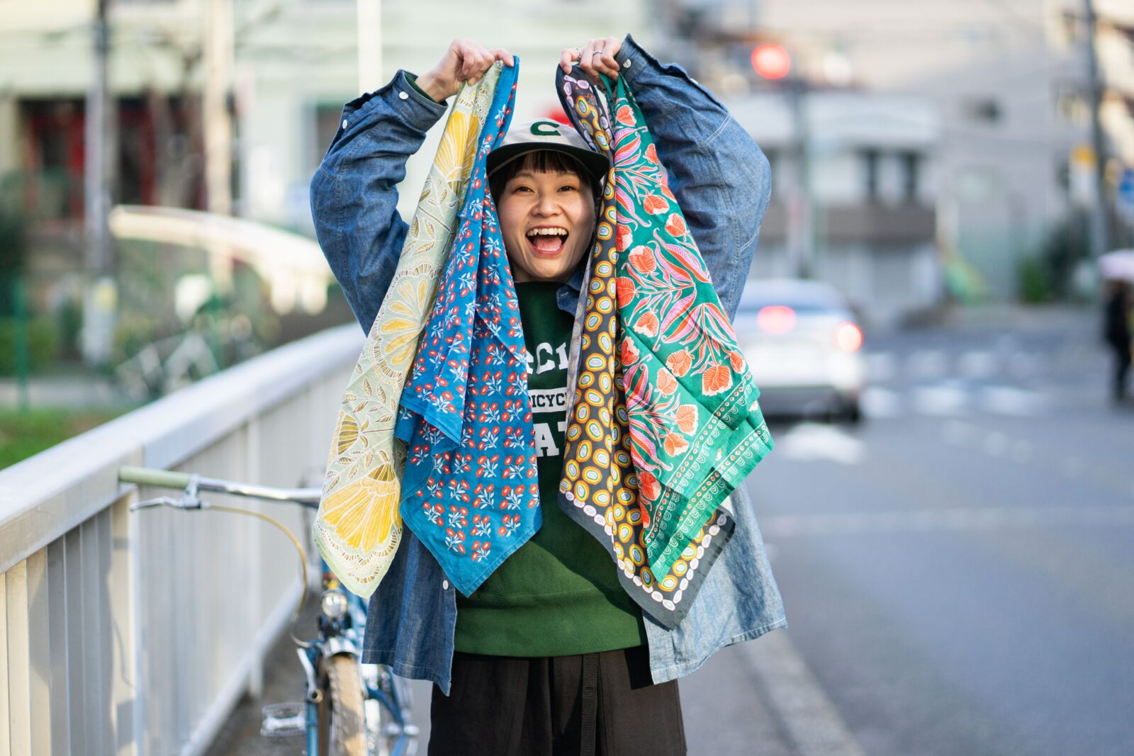 こんな可愛いデザインの裾バンドがあったらいいな〜とも思うけど、バンダナだからこその可愛さがあるのかも。ファッションアイテムとしてだけでなく、イチ”道具”としても使えるのがいいですね。