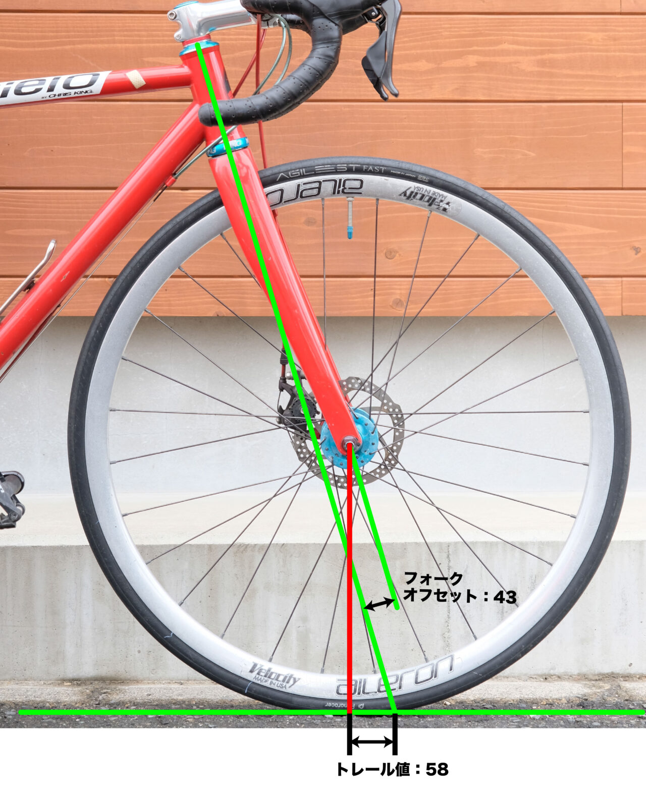 それにはまず、ヘッドアングルとフォークオフセットとトレールのお話をさせて頂こうかと思います。