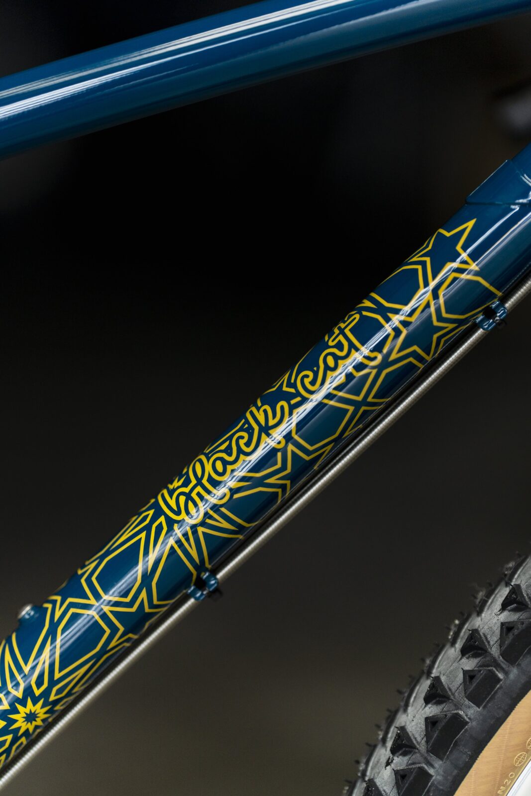 S字のシートステイを採用するのは何もBLACKCATばかりではありません。しかし、トッドが加工するそれは、他に類を見ないほどの深く美しいアールを描いています。 タイヤクリアランスのリミットとなっている27.5×2.6″を履かせるのは無理なのでは?とも思ってしまうくらい攻めたアールが特徴ですが、そこは問題ありませんのでご安心ください。