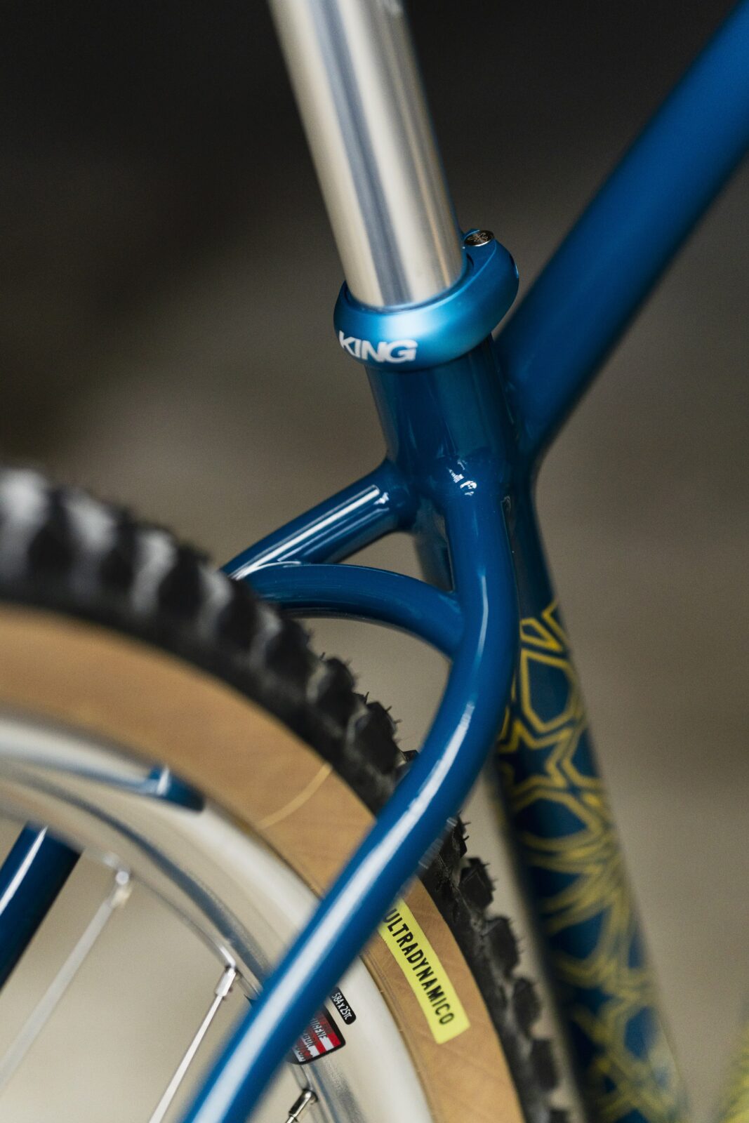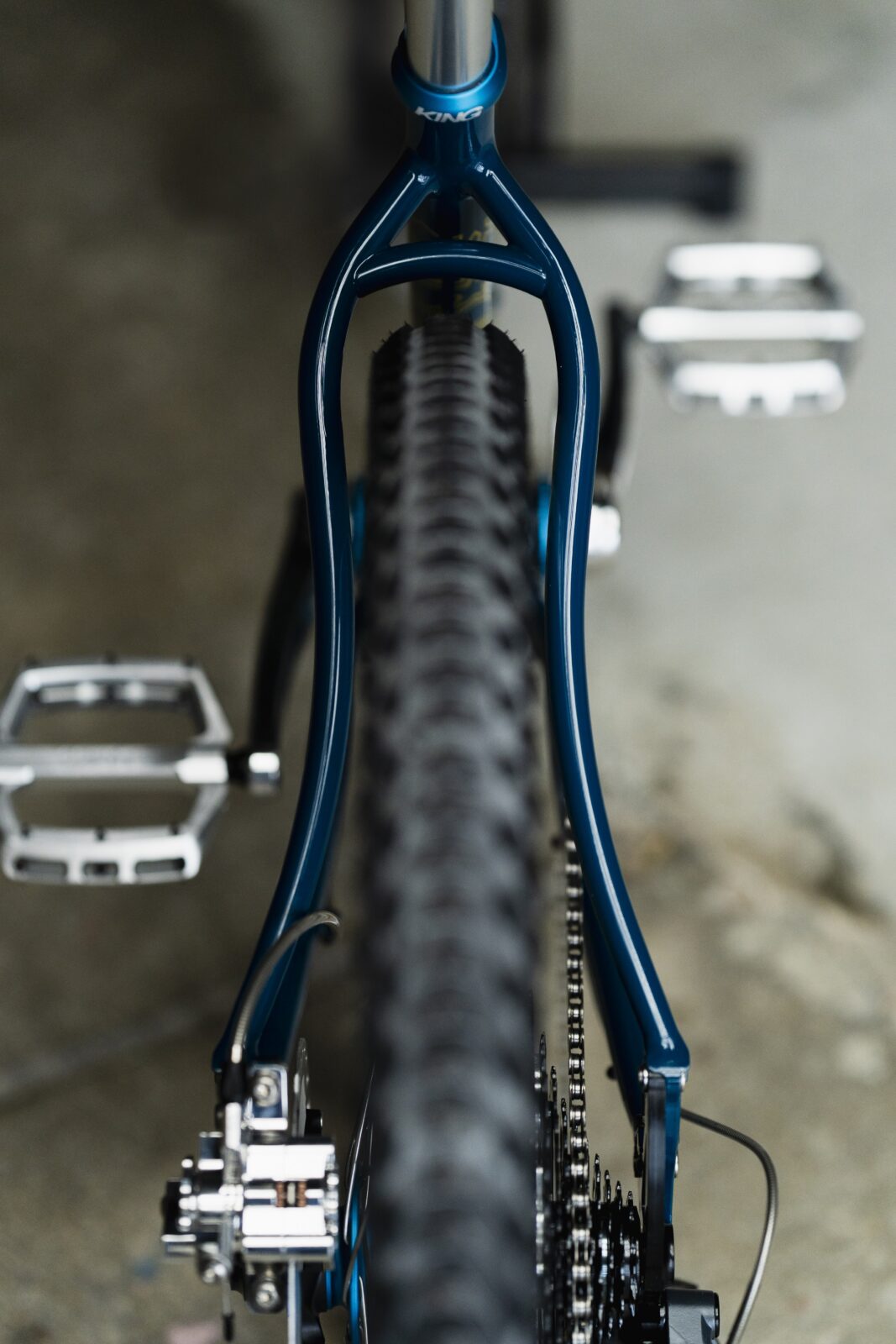 オリジナルのユニクラウンフォーク、そしてその美しいラウンドトップに加えて、タイアクリアランスを確保しながらも、トッドの思い描く最良のライドを可能とするリアバッグのセクシーなS字ベンドステーなど、トッドらしさが全開に織り込まれたバイクに仕上がっています。