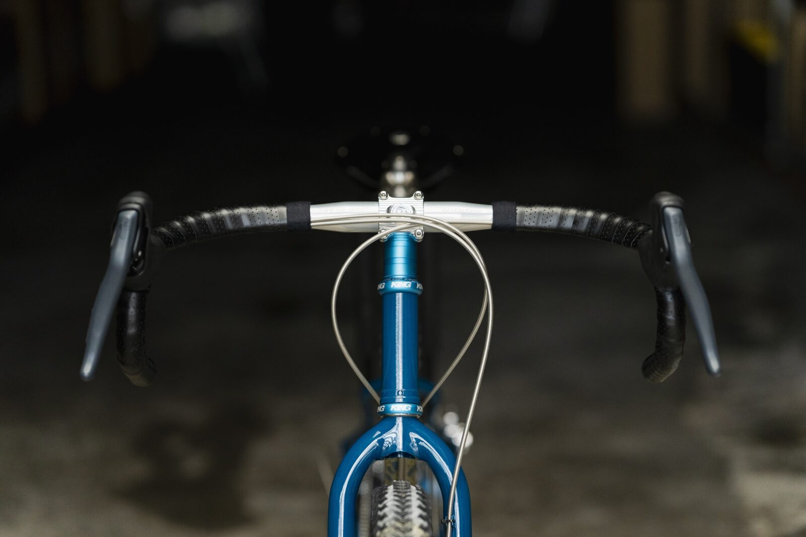 通常であればフラットハンドルで組むのがセオリーですが、今回はオーナー様立っての希望でドロップハンドルを装着してダートツアラースタイルのアッセンブルとなりました。