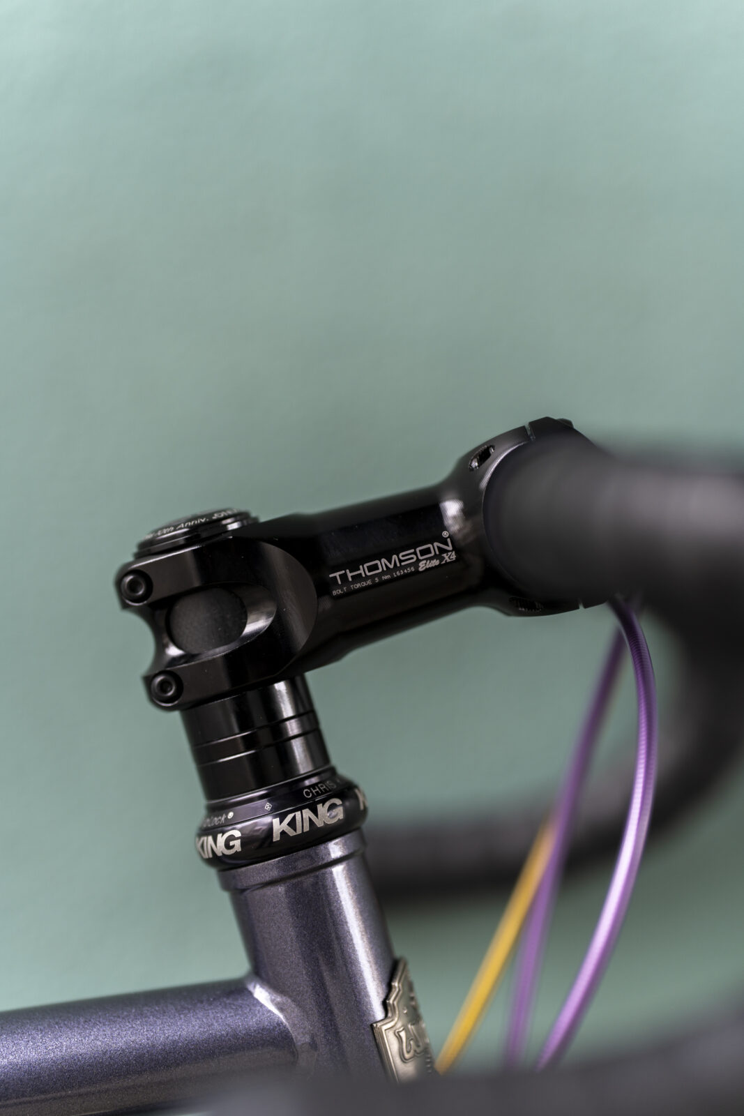 ステムとシートポストは元々THOMSONのものを使用していらっしゃいました。シートポストはそのまま移植となりましたが、フレームのジオメトリーも変わることもあり、ステムは短めのものを新調しました。