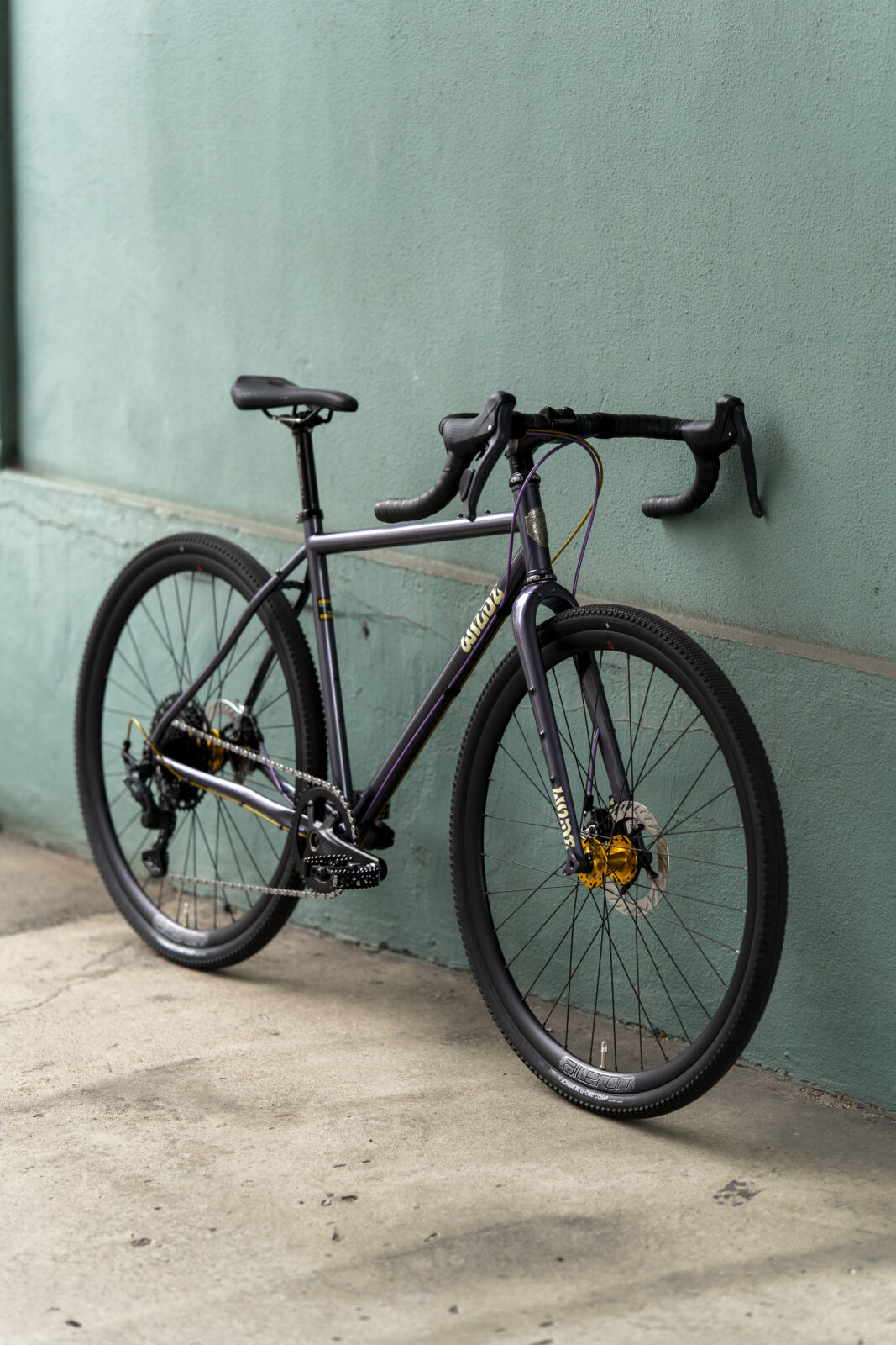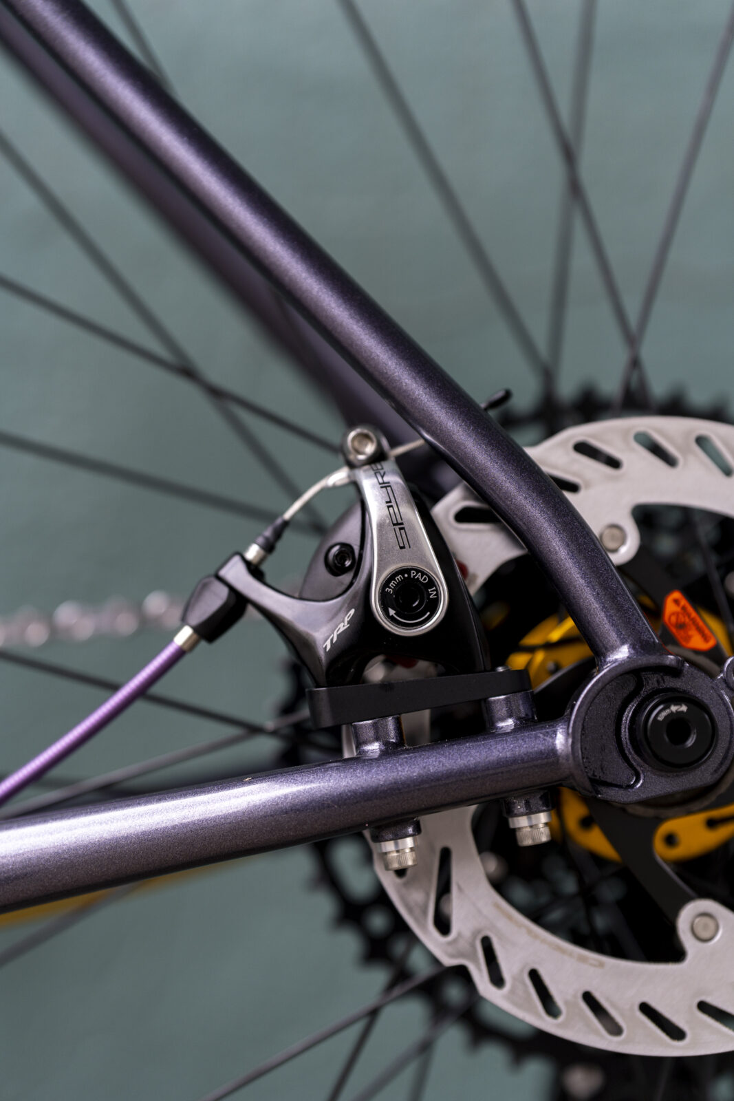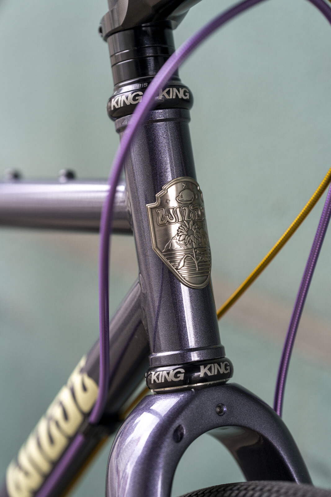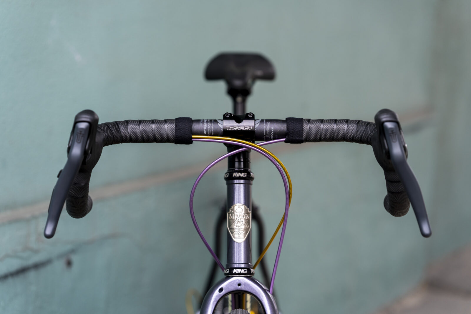 ブレーキのアウターケーブルはフレームカラーに合わせてClear Purpleを、シフトのアウターケーブルはCHRIS KING ハブのカラーに合わせてゴールドに一番近いClear Mustardを選びました。少し派手になってしまうかとも思いましたがとても良いバランスになりました。